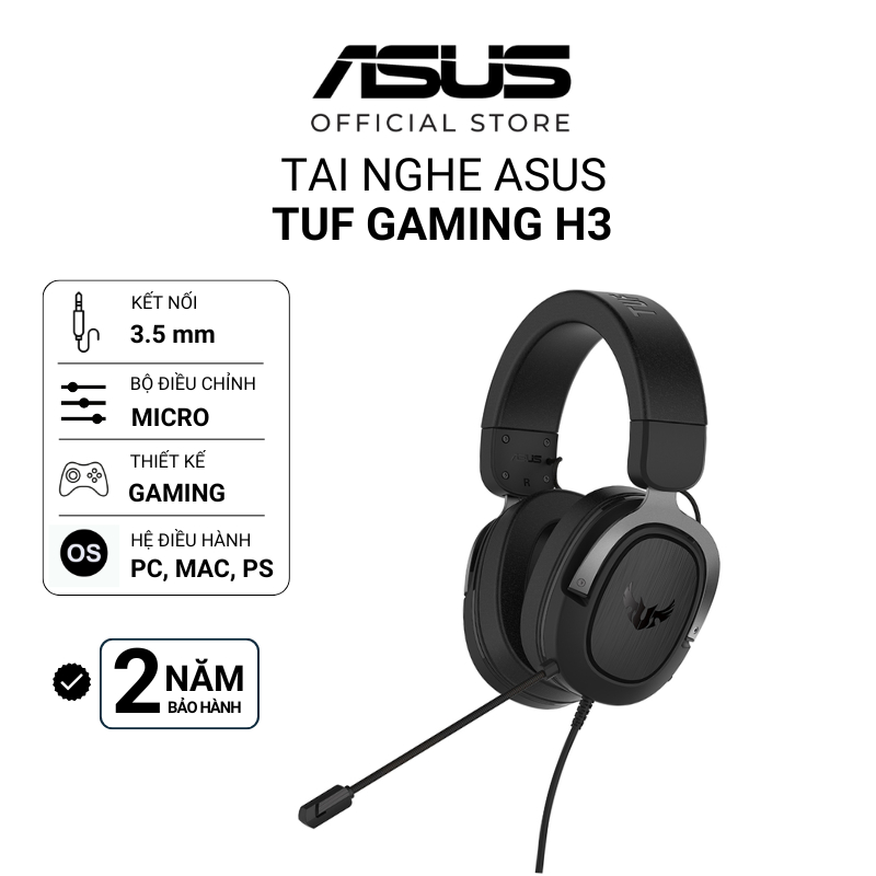 Tai nghe gaming ASUS TUF GAMING H3 90YH028G-B1UA00 XÁM âm thanh vòm 7.1 CHÍNH HÃNG