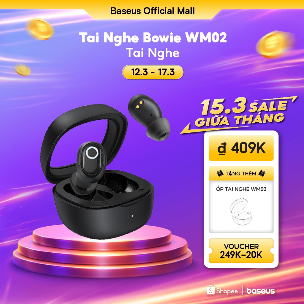 Tai nghe nhét tai không dây BASEUS WM02 bluetooth 5.3 TWS chống ồn