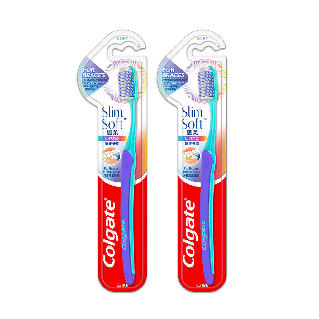 Bộ 2 bàn chải Colgate Slimsoft Ortho lông chải mềm mại xếp hình U cho người niềng răng