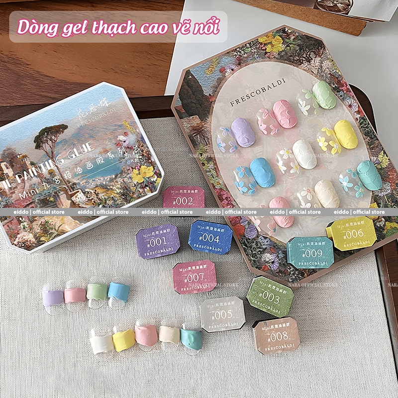 Set gel thạch cao vẽ nổi Eiddo - Set 9 màu tone pastel mịn mướt - Gel thạch cao xi măng đa năng trang trí móng