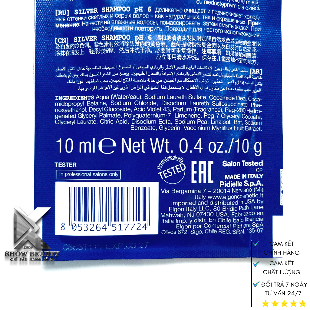 Dầu Gội Tím Elgon Khử Vàng Giữ Màu Tóc Cho Nền Tóc Tẩy Sáng - Dạng Gói 10ml