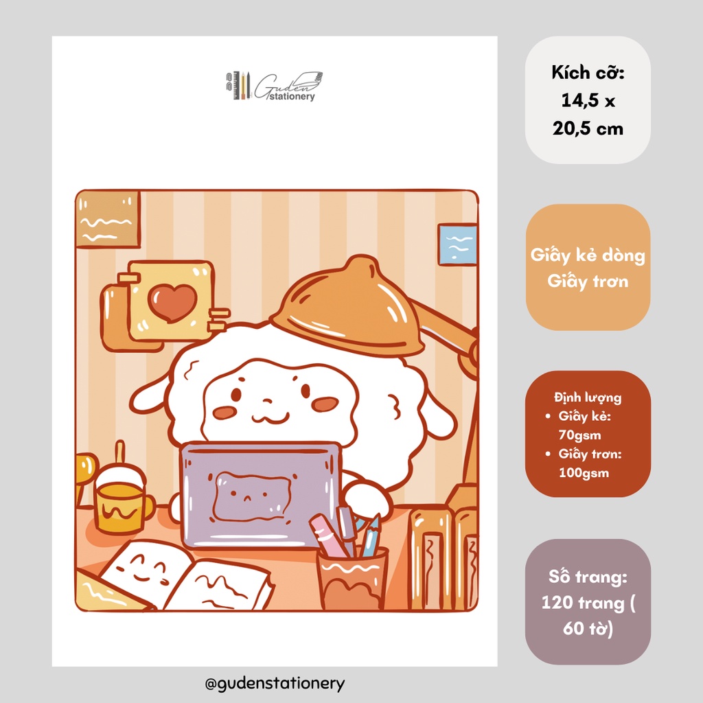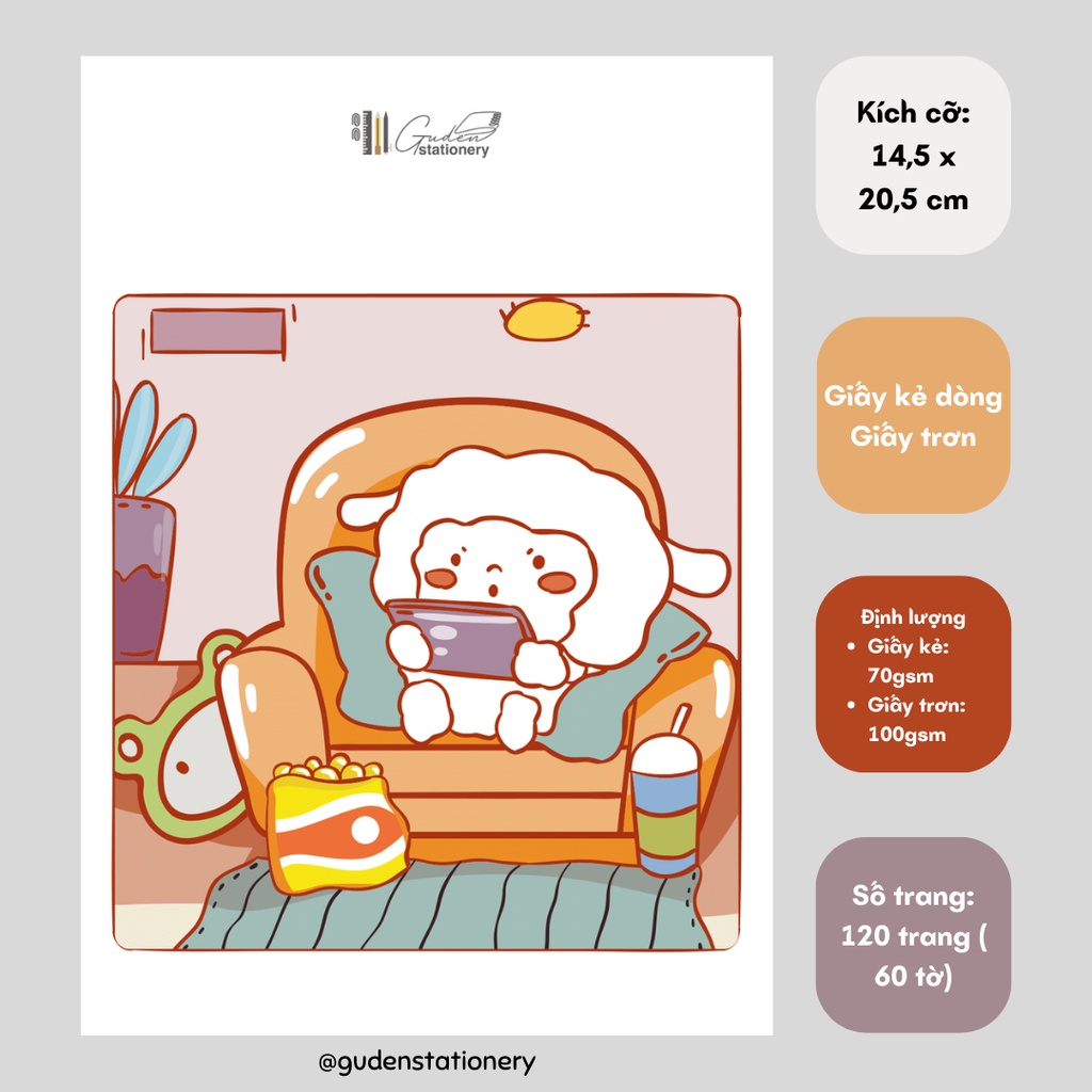 Sổ tay cỡ A5 chú cừu dễ thương 120 trang_Guden Stationery