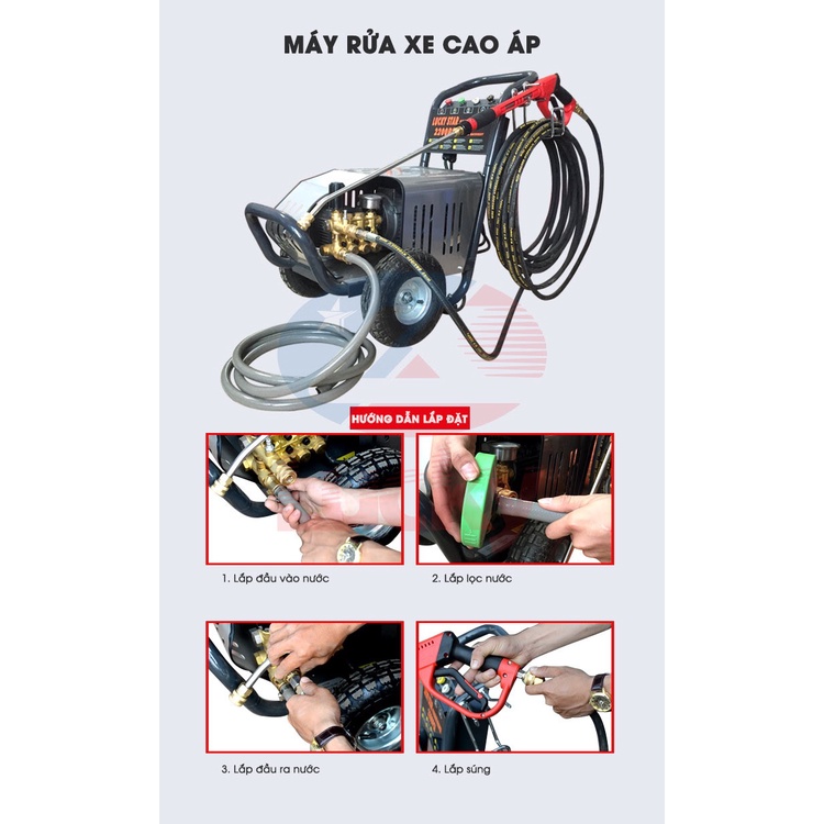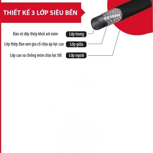 Dây rửa xe 3 lớp bố thép cao áp 15m + kèm khớp nối nhanh 3/8 (17mm)