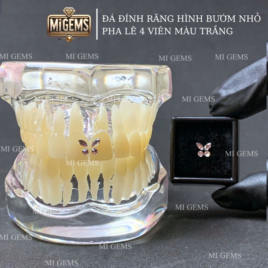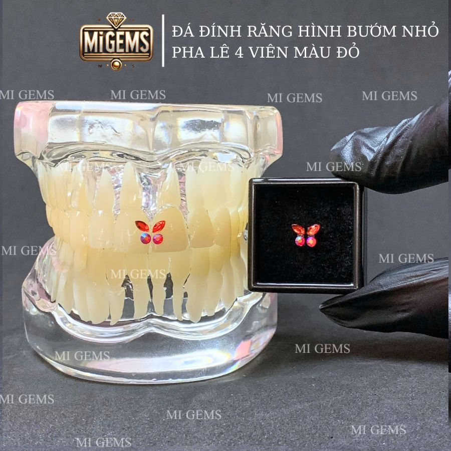 [Tặng keo bút] Đá hình bướm size nhỏ 4 viên pha lê đính răng, gems đính răng Mi Gems