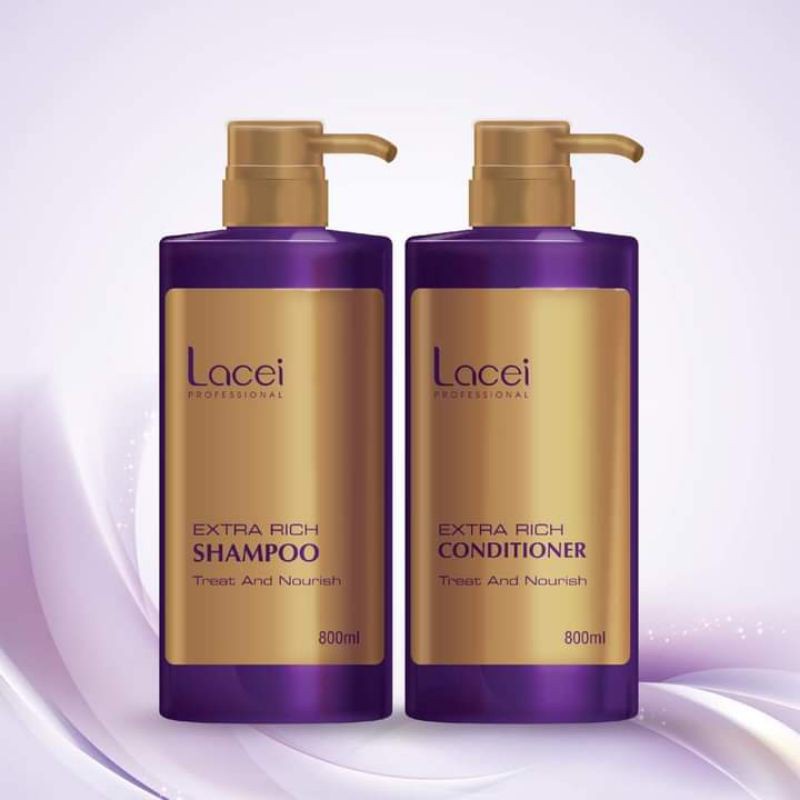 [MẪU MỚI] BỘ DẦU GỘI, DẦU XẢ PHỤC HỒI TÓC SIÊU MƯỢT LACEI EXTRA RICH MÀU TÍM 800MLx2