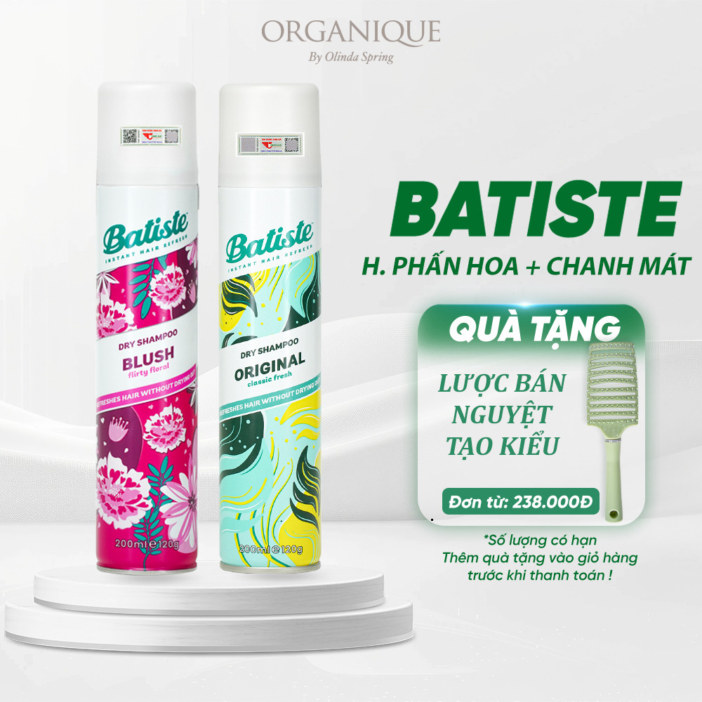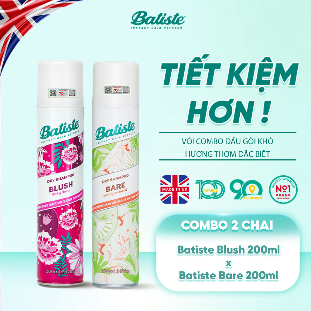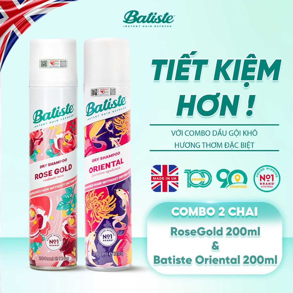 [Siêu Tiết Kiệm] Combo 2 Chai Dầu Gội Khô Batiste Dầu gội khô Cho Da Dầu Hết Bết Dính Bồng Bềnh Lưu Hương Dài Lâu