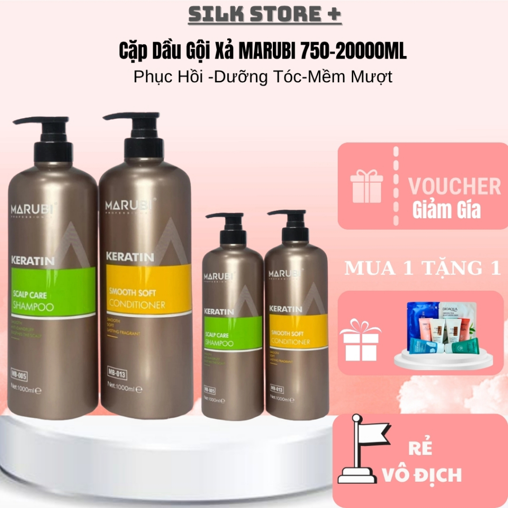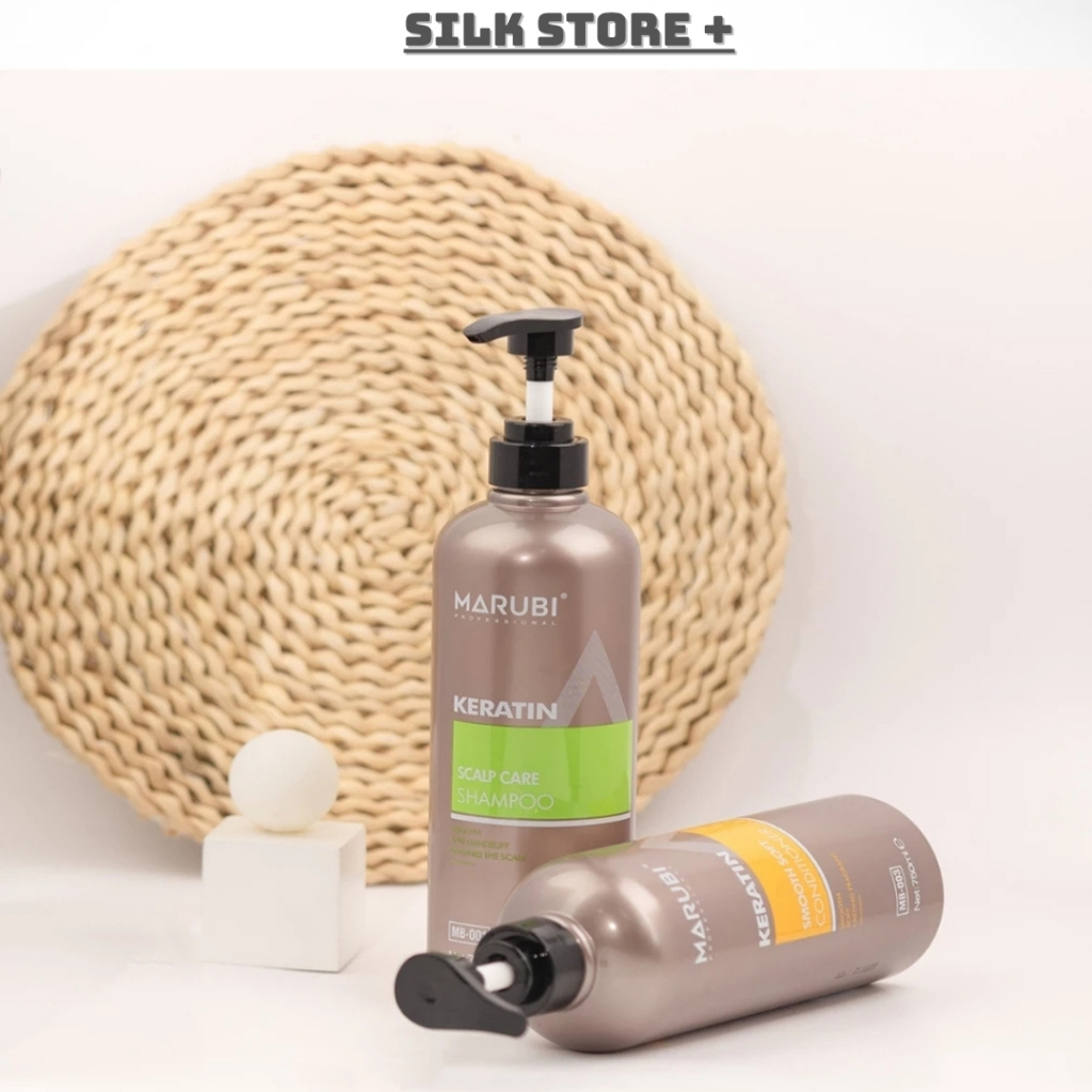 Cặp Dầu Gội Xả Keratin Marubi 750ml Silkstore+ Phục Hồi Hư Tổn Giảm Rụng Kích Mọc Tóc Lưu Hương Lâu