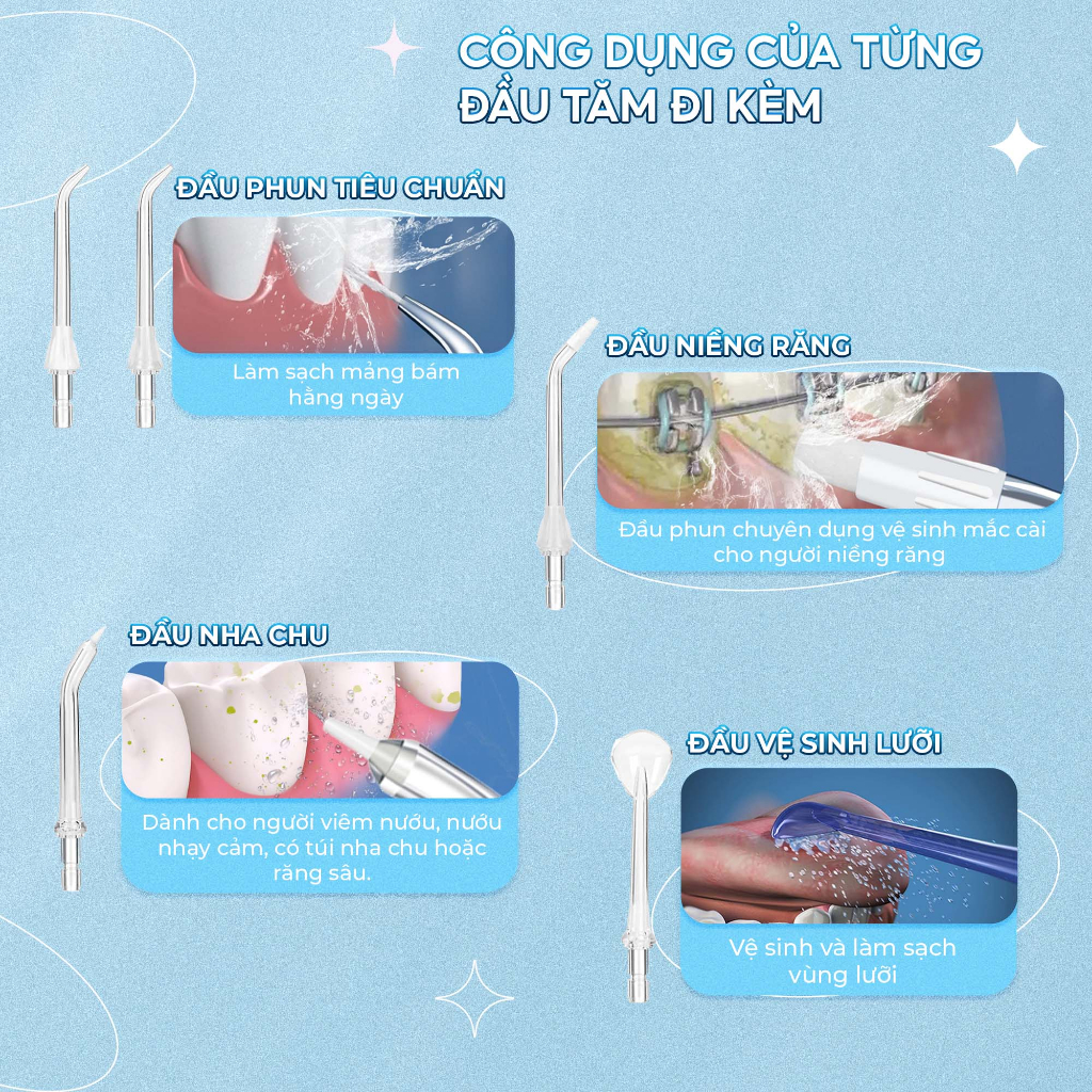 Tăm nước mini du lịch h2ofloss HF10 2025, bản nâng cấp với sạc type C