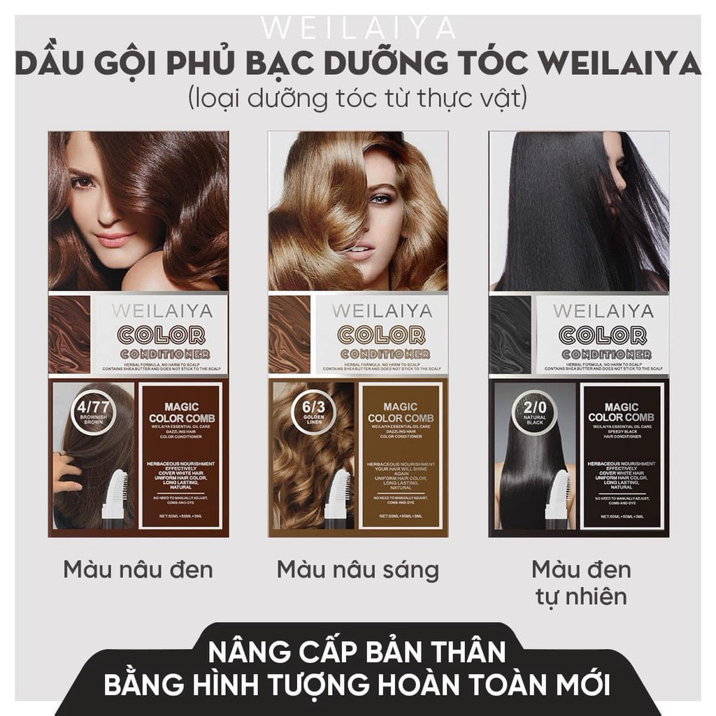 Dầu Gội Phủ Bạc Weilaiya 100ml, Dầu Gội Nhuộm Tóc Đen Vàng Nâu Dưỡng Tóc Bóng Mượt Bền Màu Chắc Khỏe.