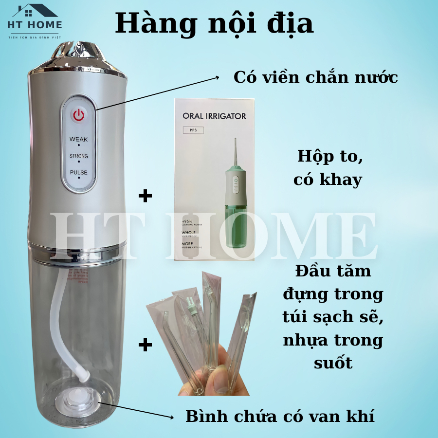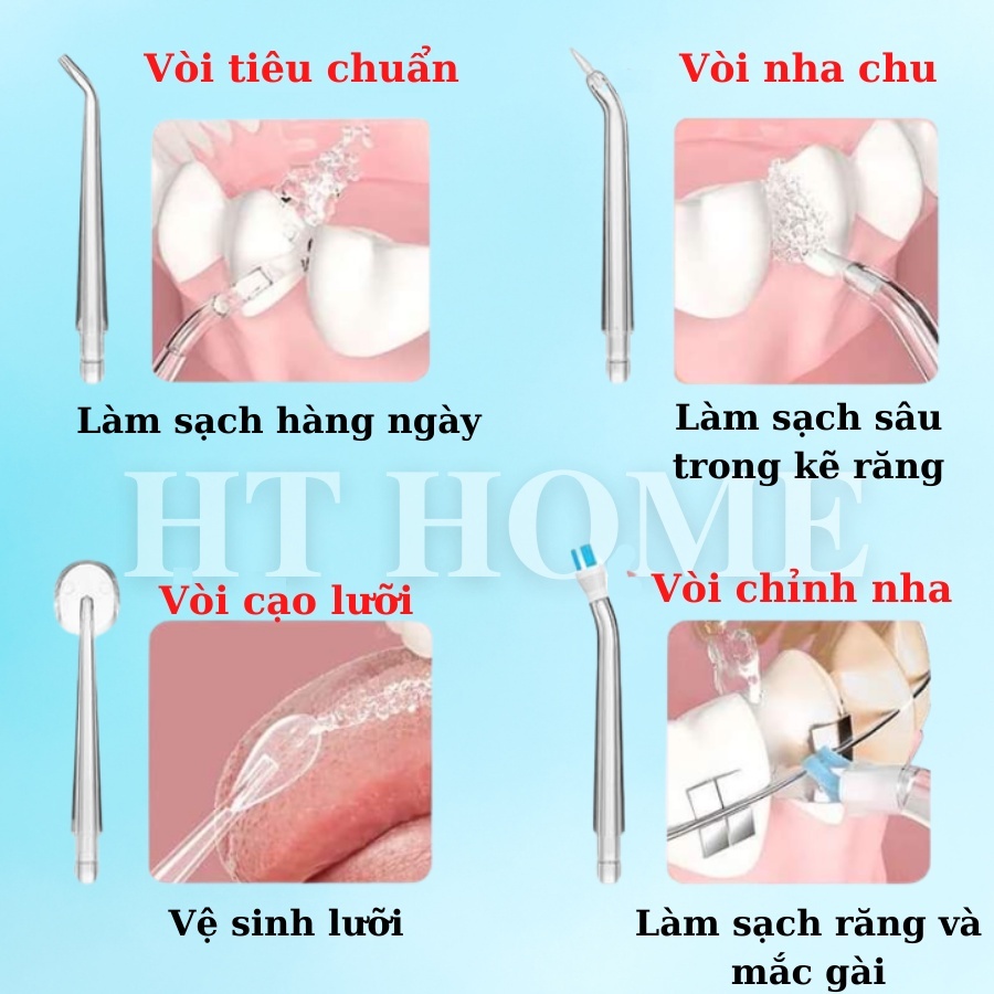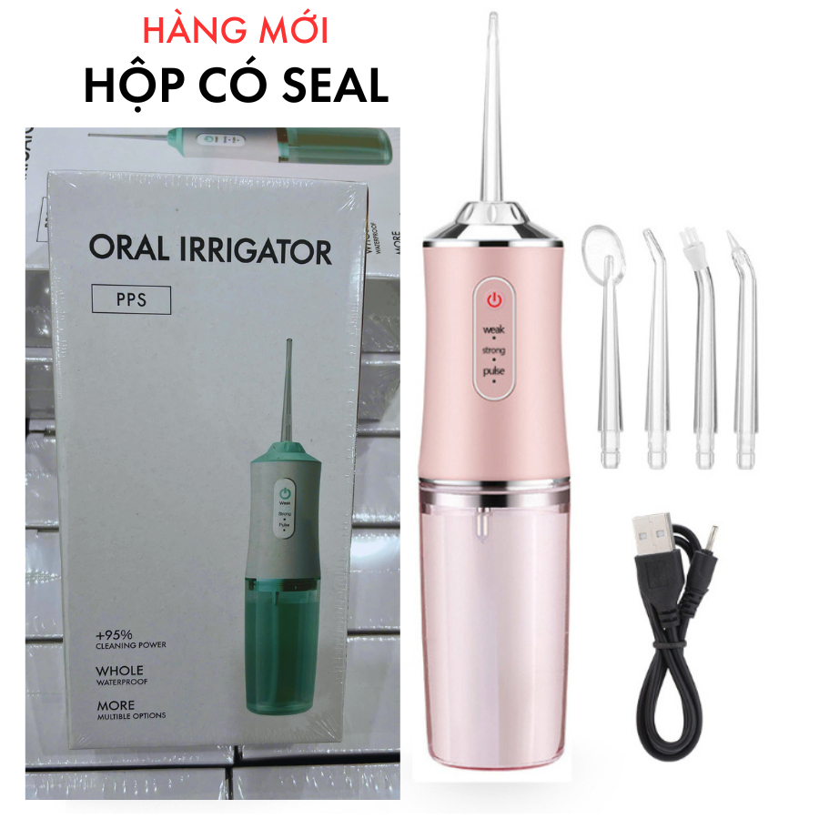 Tăm Nước Oral Irrigator Nội Địa Máy Tăm Nước Cầm Tay Vệ Sinh Răng 4 Đầu Tăm Bình Chứa 220ML