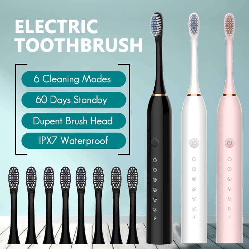 Bàn chải điện Sonic X3 pro đánh răng tự động với lông chải mềm mịn tặng 4 đầu chải