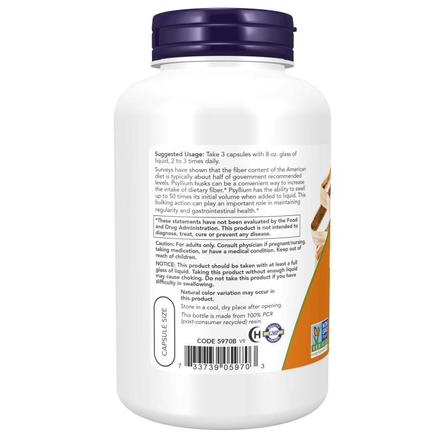 Viên uống chất xơ Psyllium Husk Caps Now chiết xuất vỏ mã đề (500 viên) giúp giảm nhanh táo bón