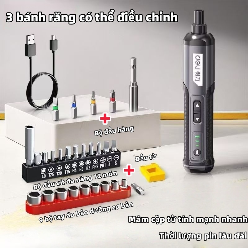 Bộ vít điện Deli Đa Chức Năng có thể sạc lại máy khoan điện nhỏ có thể sạc lại bằng USB cho hộ gia