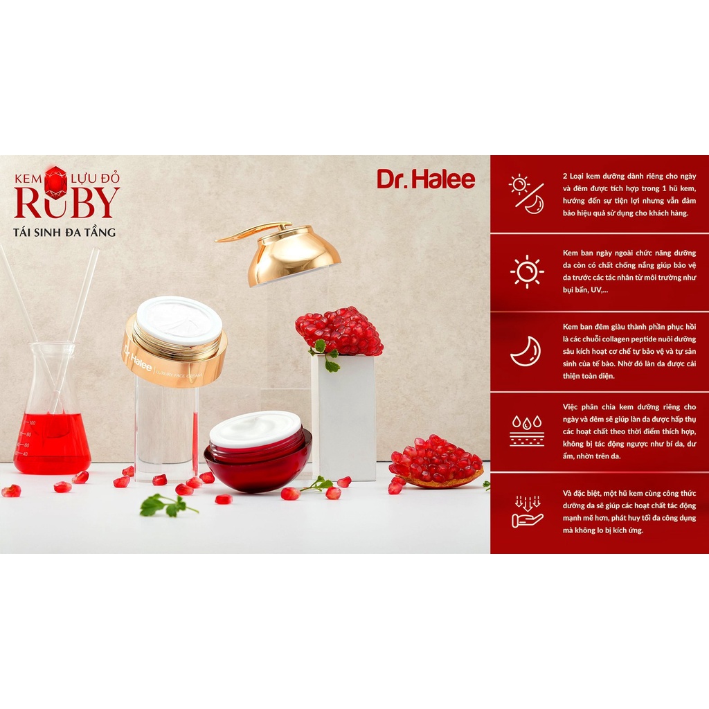Kem Face Ruby Lựu Đỏ Dr.Halee Dưỡng Trắng Da Ngày & Đêm 50g