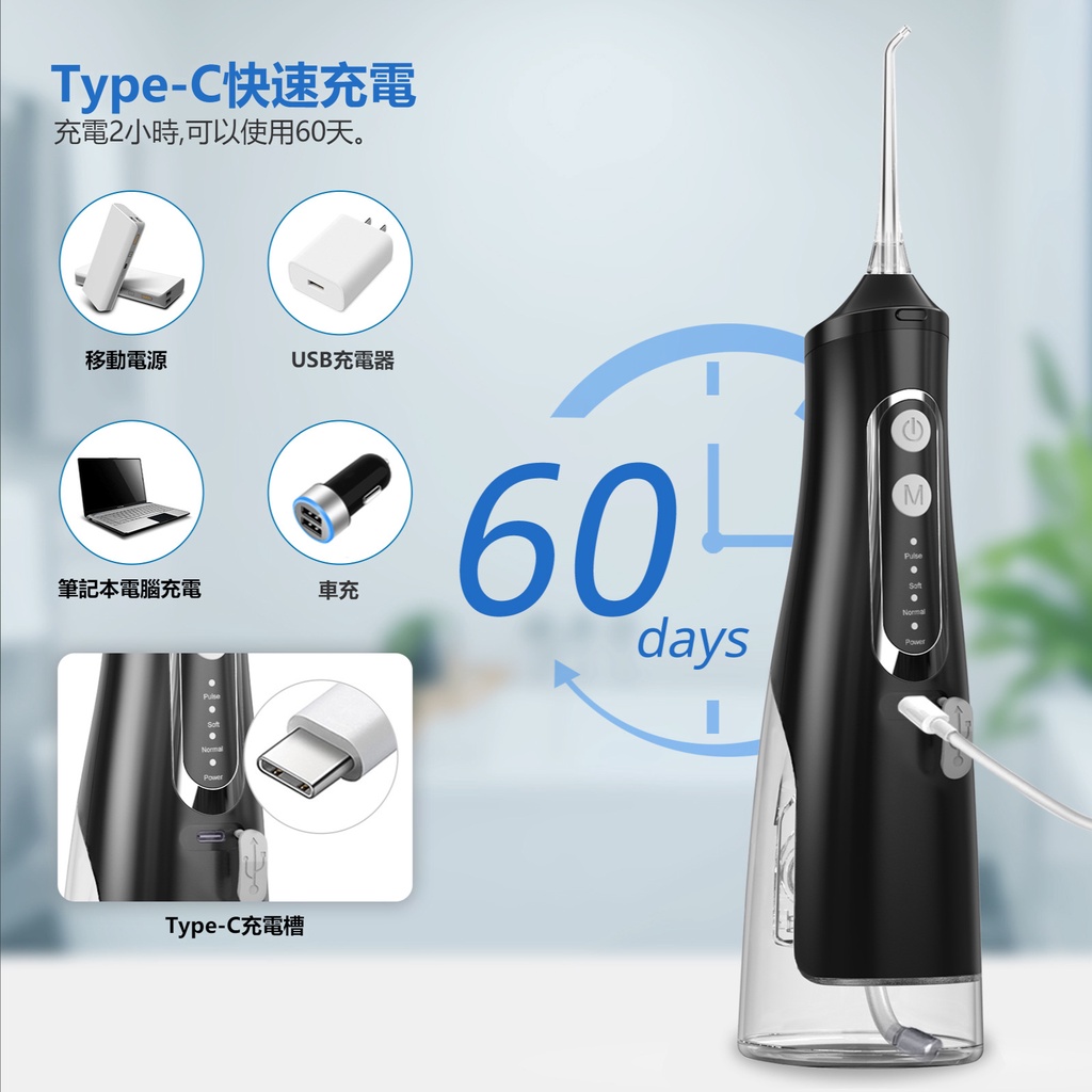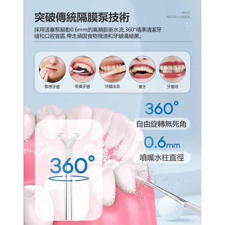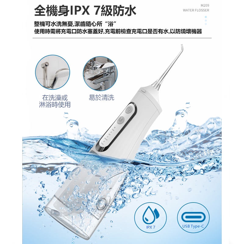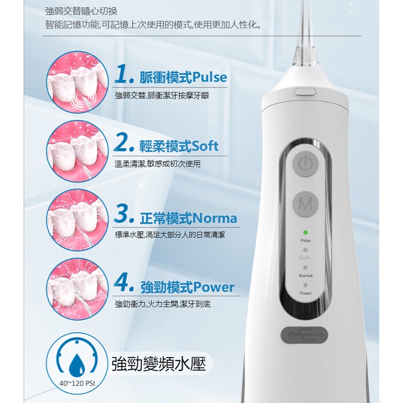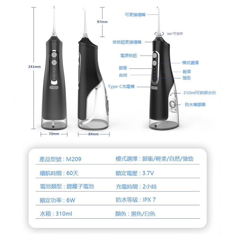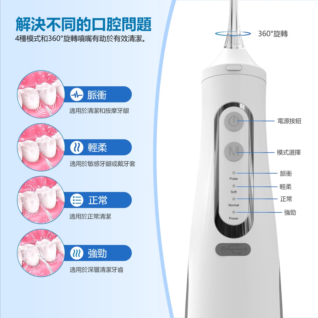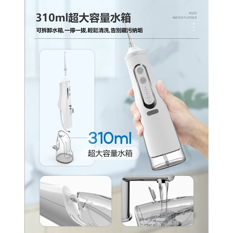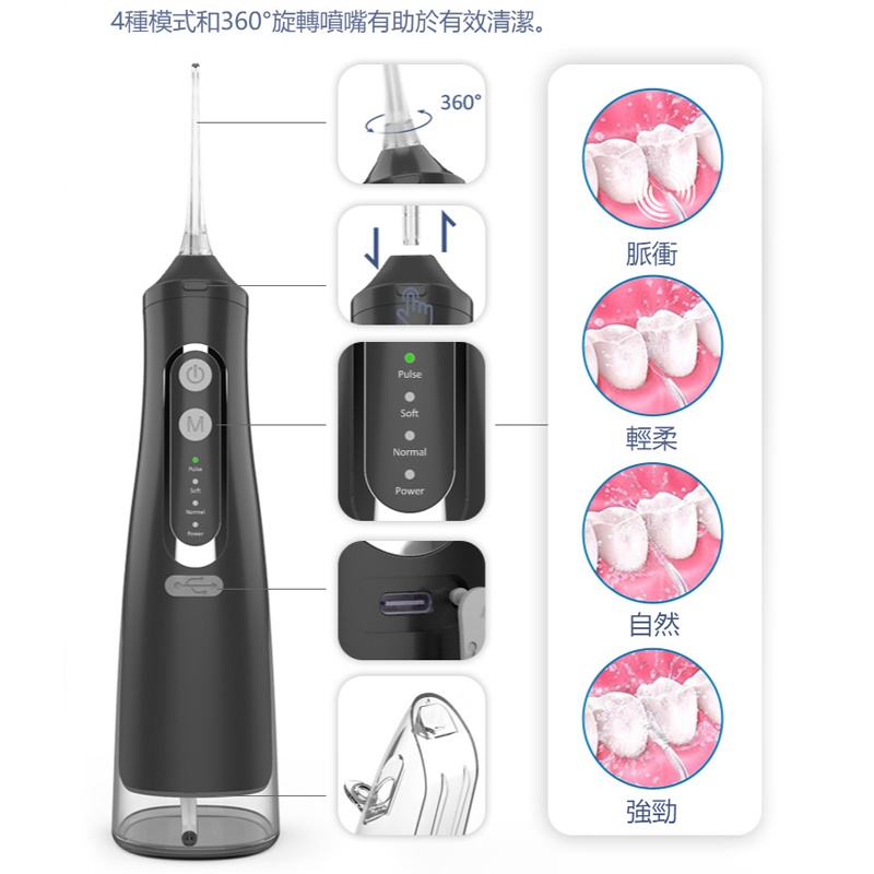 WPOI Máy tăm nước cầm tay bình nước to 310ml 4 đầu phun 4 chế độ xịt, vệ sinh răng miệng giảm viêm nướu