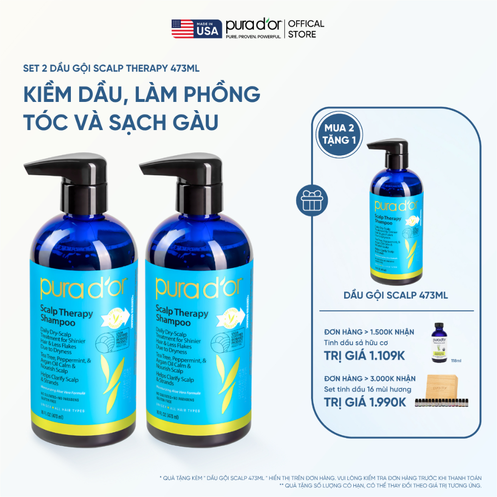 Dầu gội Pura D'or Scalp Therapy Giúp Dịu Da, Làm Sạch Tóc Và Dưỡng Ẩm 473ml
