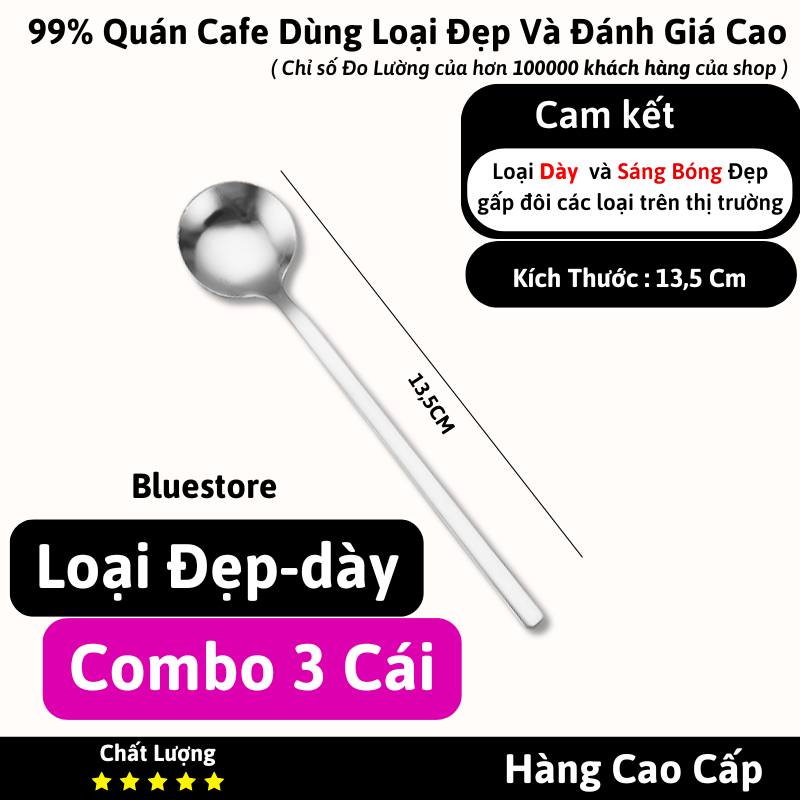 Thìa, muỗng cafe inox (3-10 cái) cao cấp cute sang chảnh pha trà sinh tố