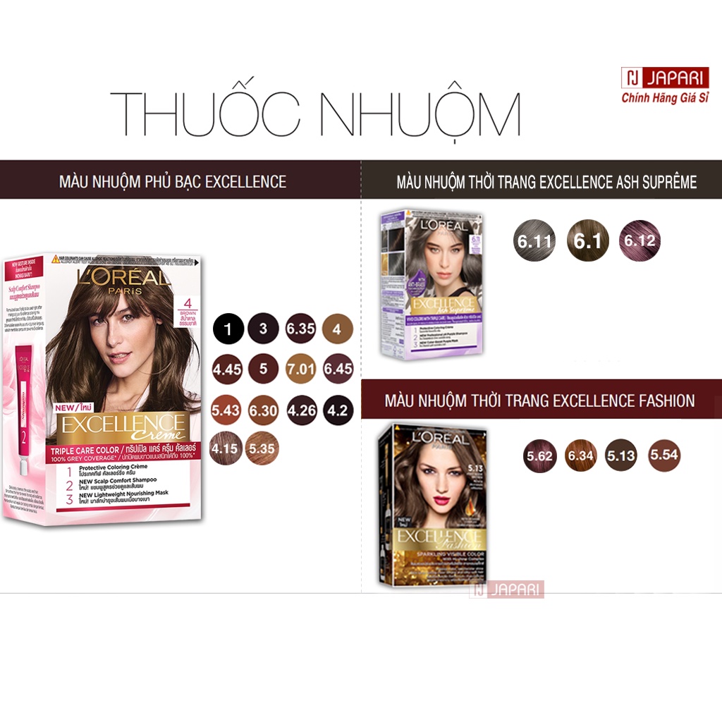 Thuốc Nhuộm Tóc Loreal CHÍNH HÃNG Phủ Bạc FULL - Nhuộm Tóc Đen Nâu Trà Sữa, Nâu Lạnh, Hạt Dẻ Vàng Sáng Xanh Đen Japari
