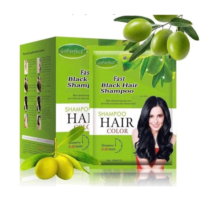 Hộp 10 Gói Gội phủ bạc Fast Black Hair Color Oliu Xanh Thảo Dược Gọi Là Đen 30ml/gói