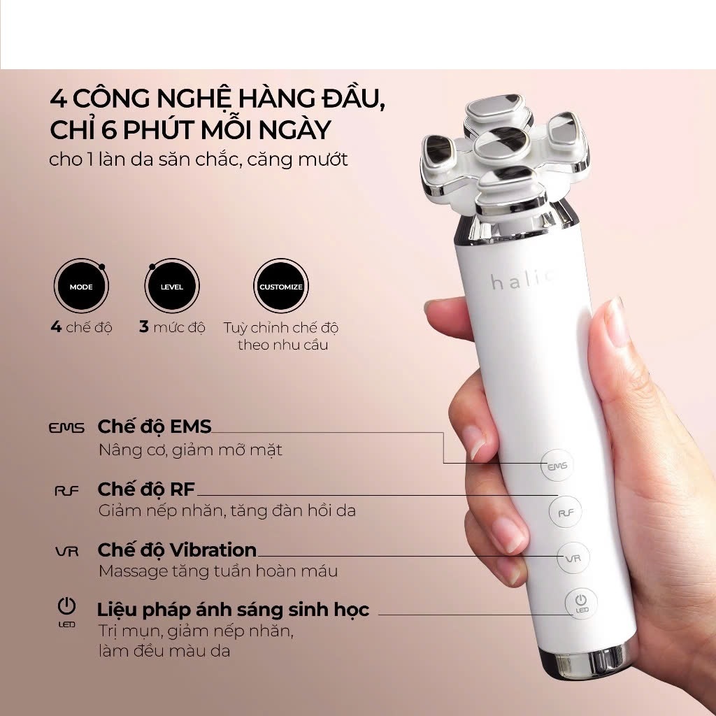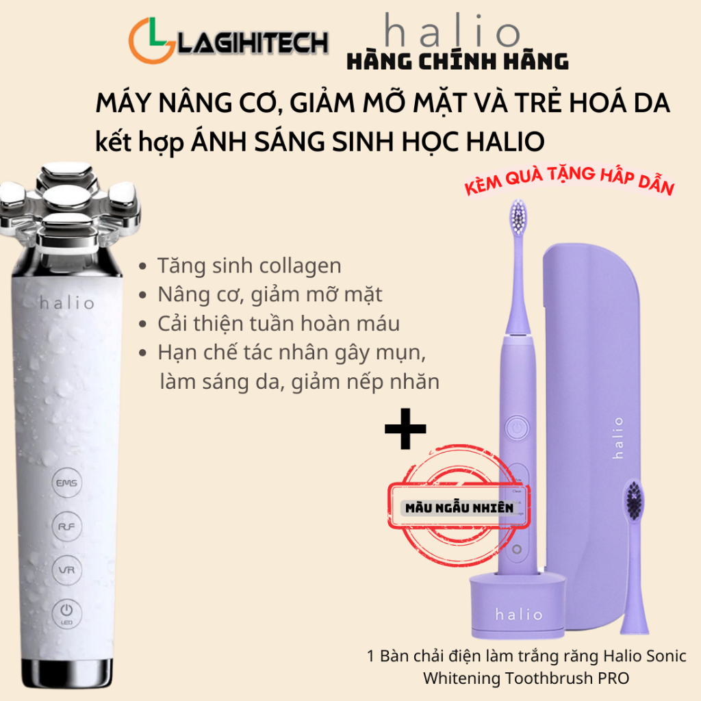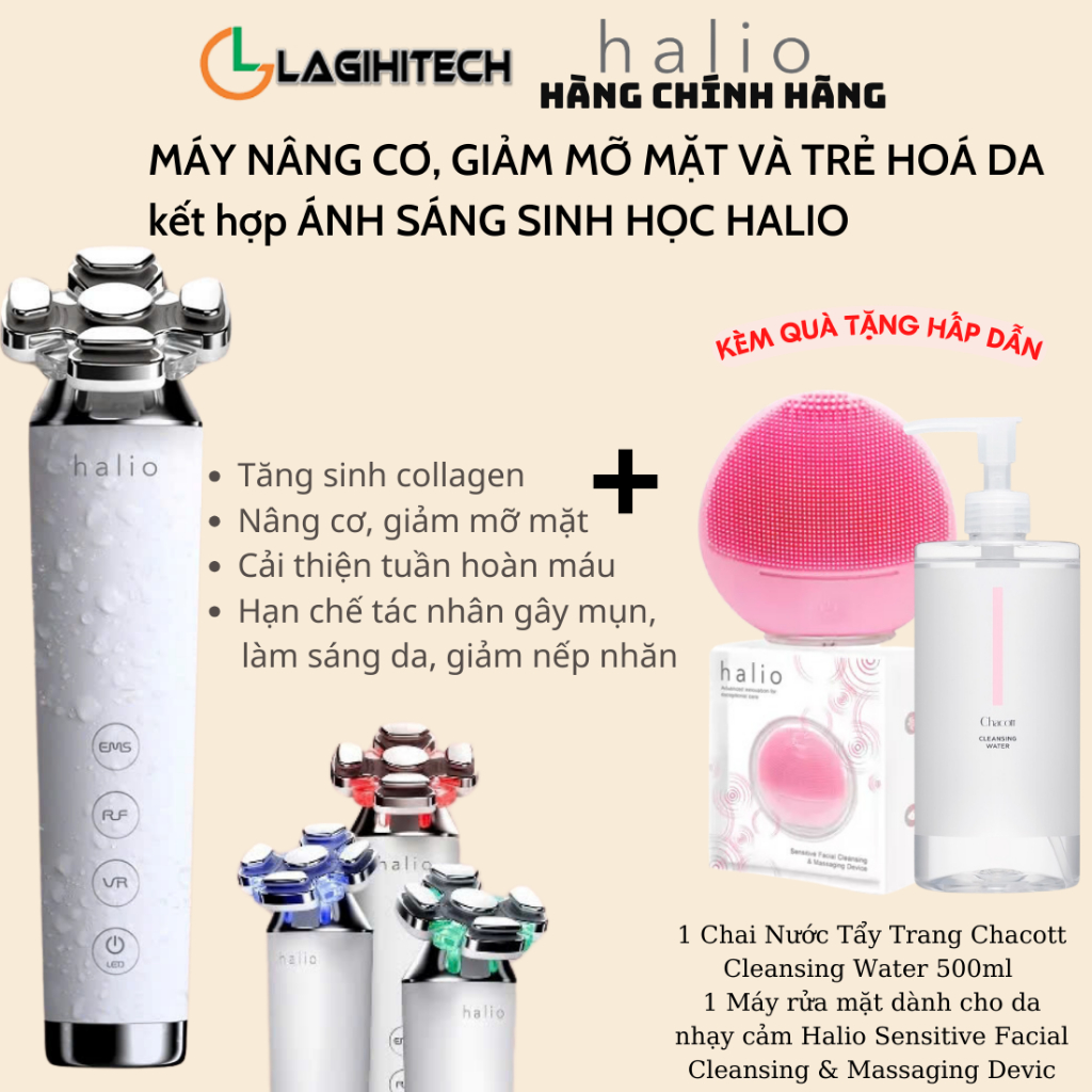Máy Nâng Cơ, Giảm Mỡ Mặt & Trẻ Hoá Da kết hợp Ánh Sáng Sinh Học Halio RevitaWave Skin Rejuvenator - Hàng Chính Hãng