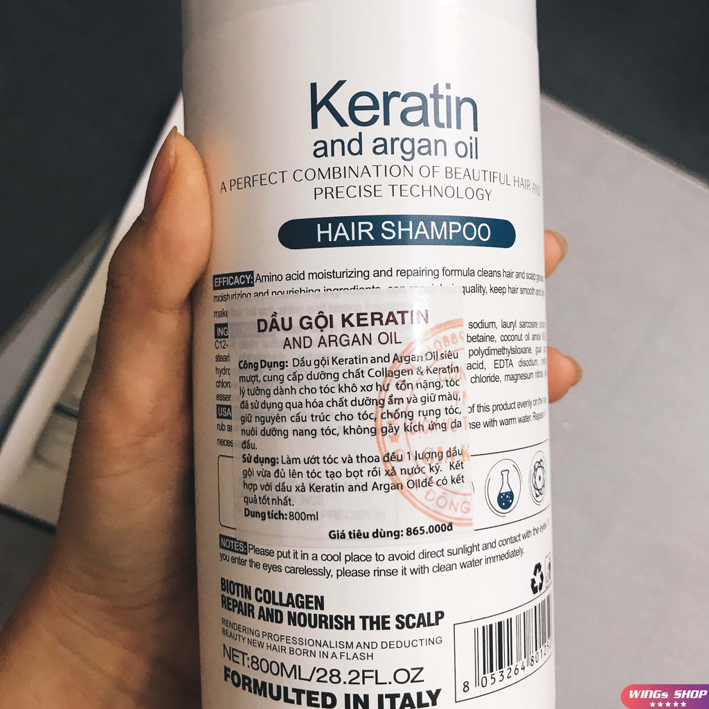 Cặp dầu gội xả Keratin & Argan Oil 800ML | Phục hồi tóc khô xơ Ngăn rụng tóc | Wings Shop