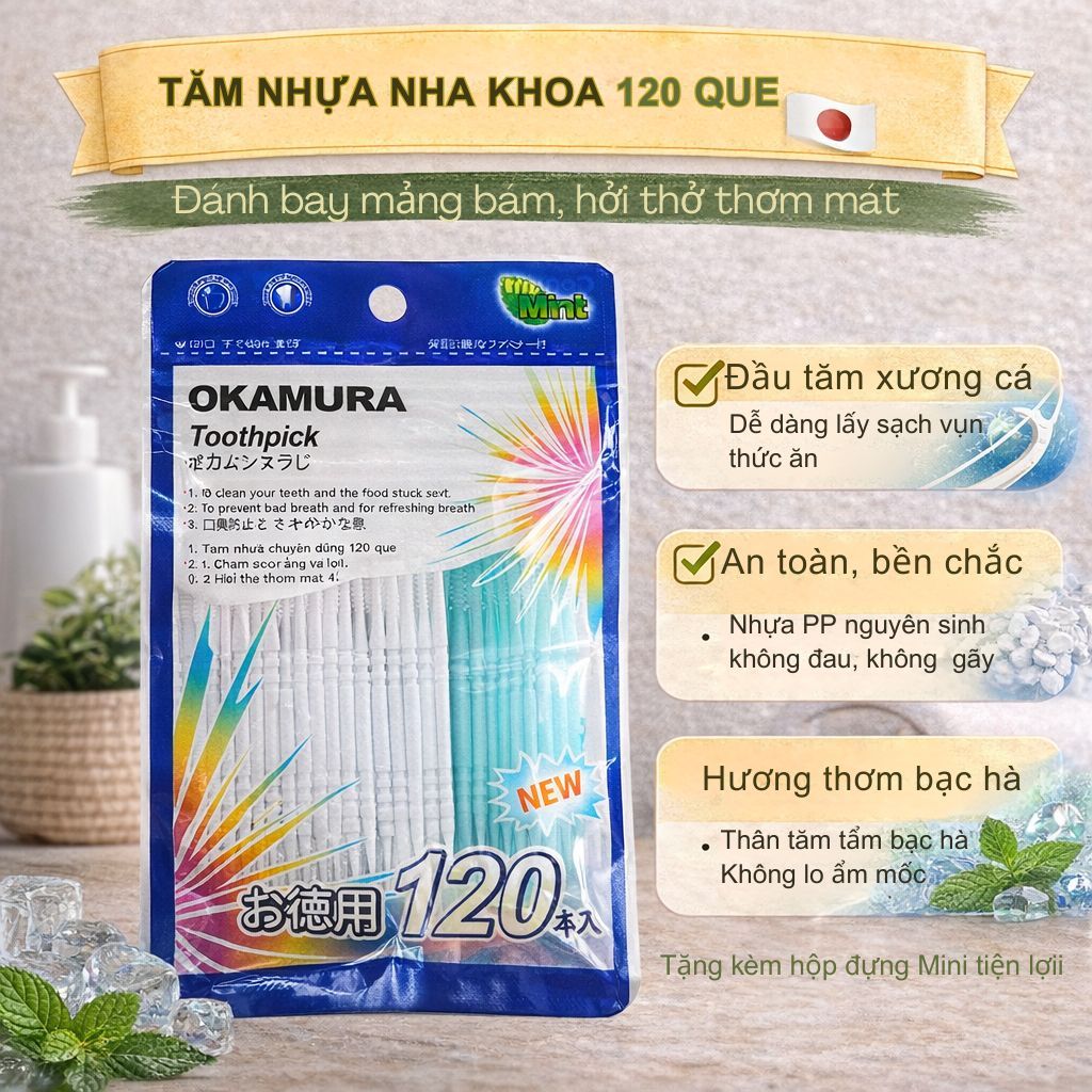 Tăm nhựa nha khoa xỉa răng cao cấp Okamura 120 que, 140 que