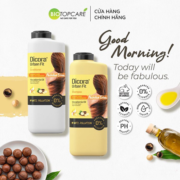 Dầu gội - xả Dicora Urban Fit Macadamia phục hồi tóc hư tổn 400ml - BioTopcare Official