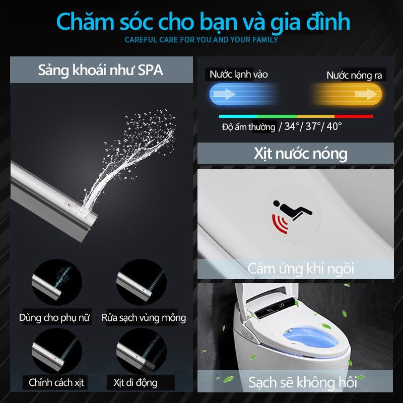 Bồn cầu thông minh Xiaomi 502Z Kết nối APP MiHome phiên bản tiếng Việt Toilet Bệ xí Bồn Tiêu cảm ứng tự động hoàn toàn