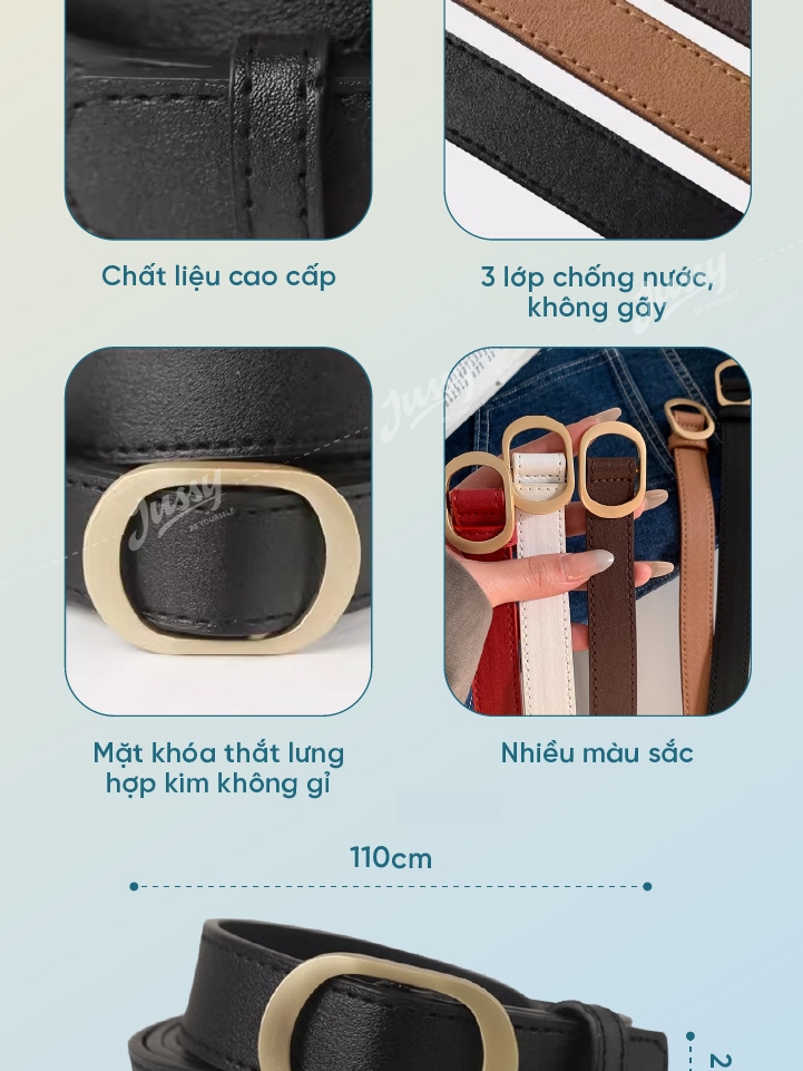 Thắt Lưng Mặt Oval Màu Vàng Ánh Kim Sang Chảnh JTL03 Jussy Official Kiểu Dây Nịt Nam Nữ Bản Nhỏ Chất Da Pu Bền Chắc