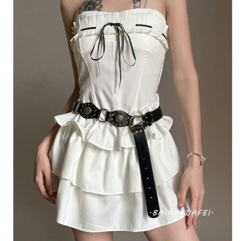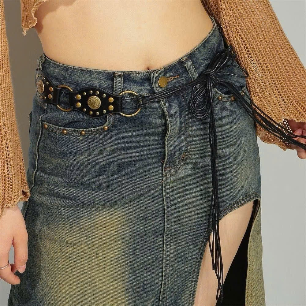 Thắt lưng/nịt da nâu y2k phụ kiện vintage