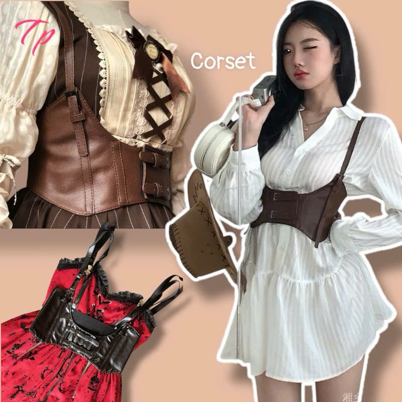 Thắt lưng nịt eo bằng da phong cách Steampunk, đai eo thắt lưng corset (có ảnh thật)