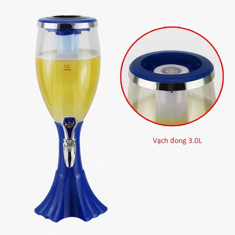 Tháp Bia 3 Lít Đựng Bia Hơi Tươi Trà Sữa Lõi Đá Giữ Lạnh Đèn Led 7 Màu Có Vòi Dùng Quán Beer, Bar, Party Mẫu 2022