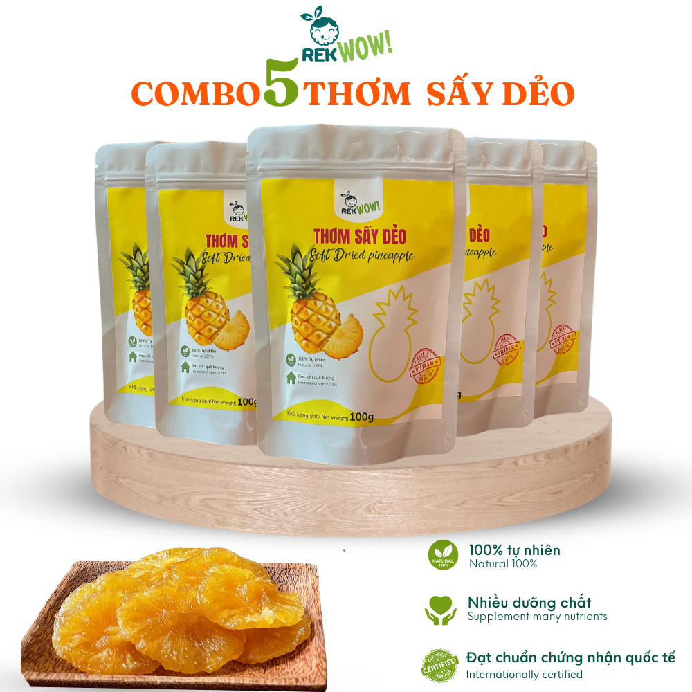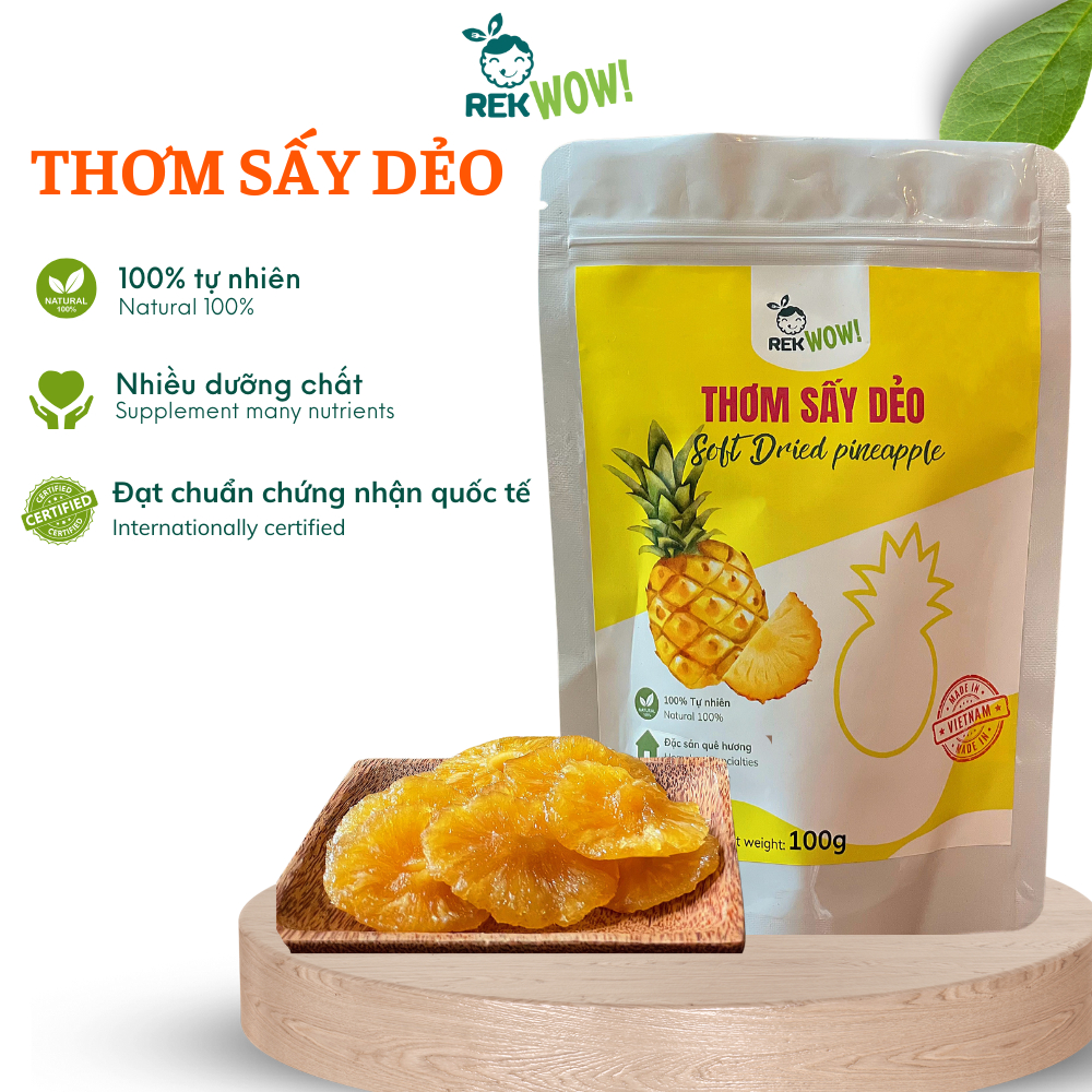 Thơm Sấy Dẻo REK WOW - Túi 100g - Ăn vặt tốt cho sức khỏe - Trái cây sấy