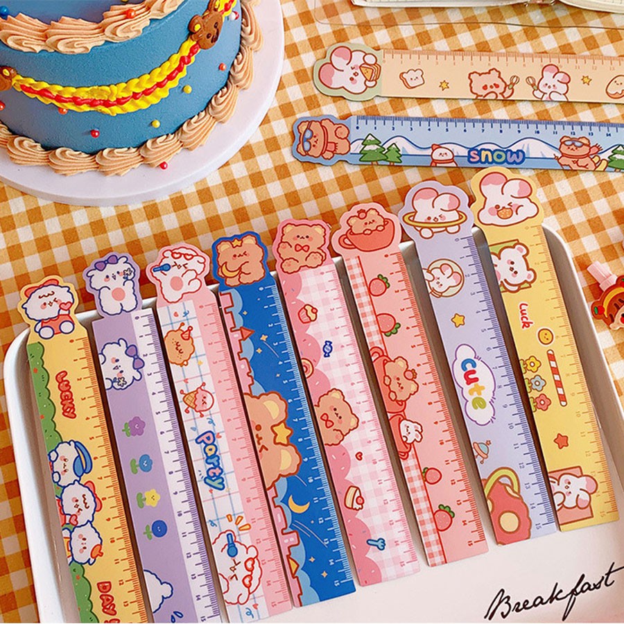 Thước kẻ 15cm nhựa dẻo uốn cong in hình họa tiết dễ thương