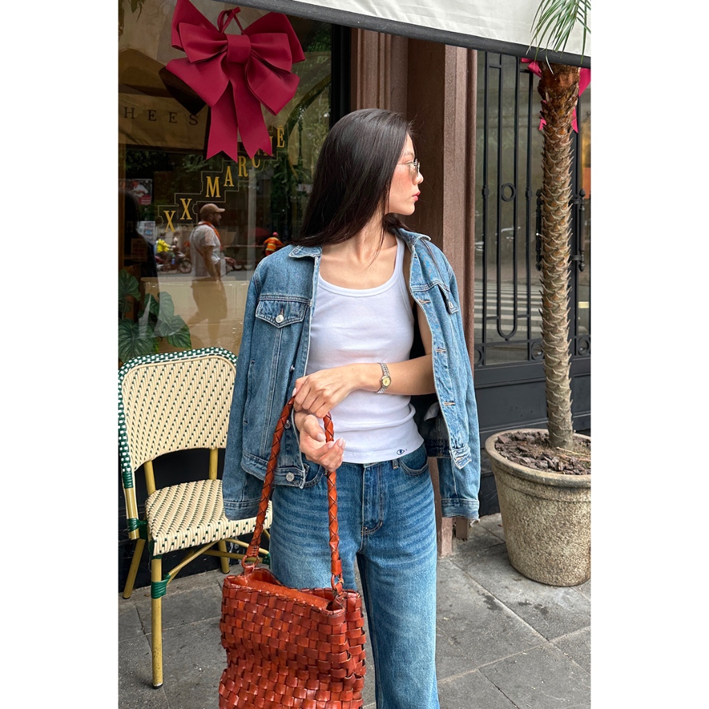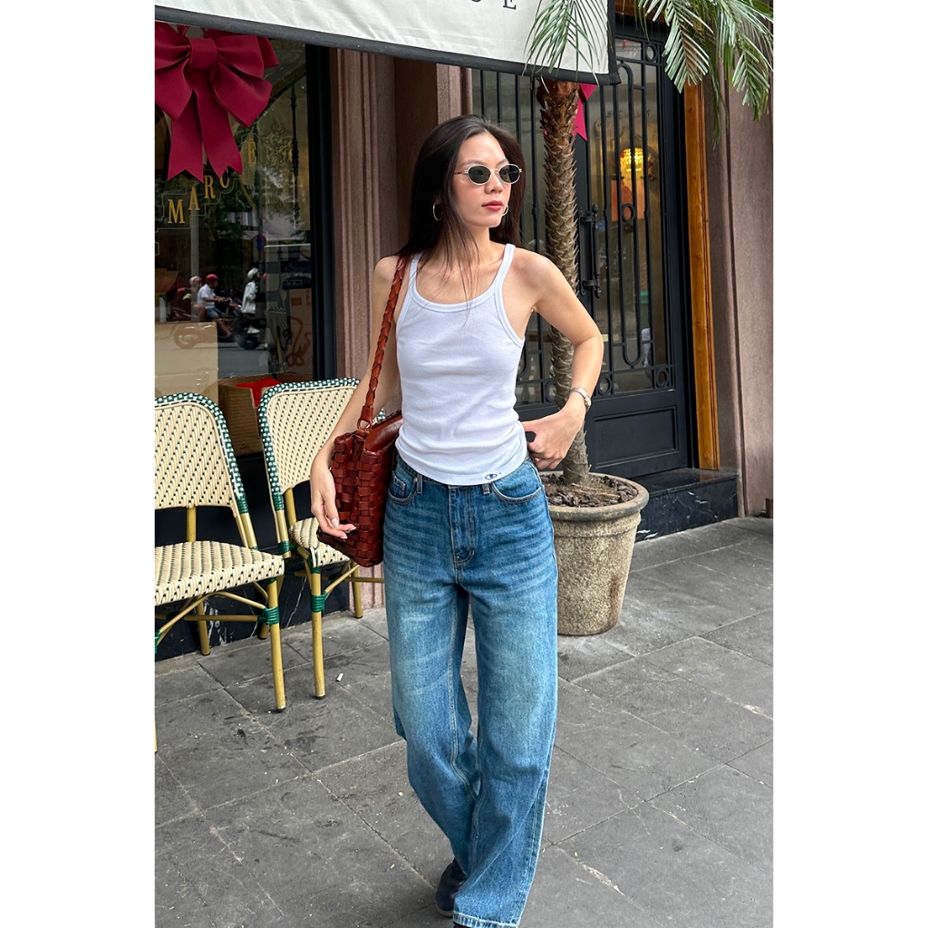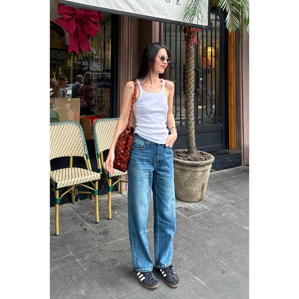 TheBlueTshirt - Quần jeans ống suông cạp cao nữ - Girl Jeans Blue City - Women