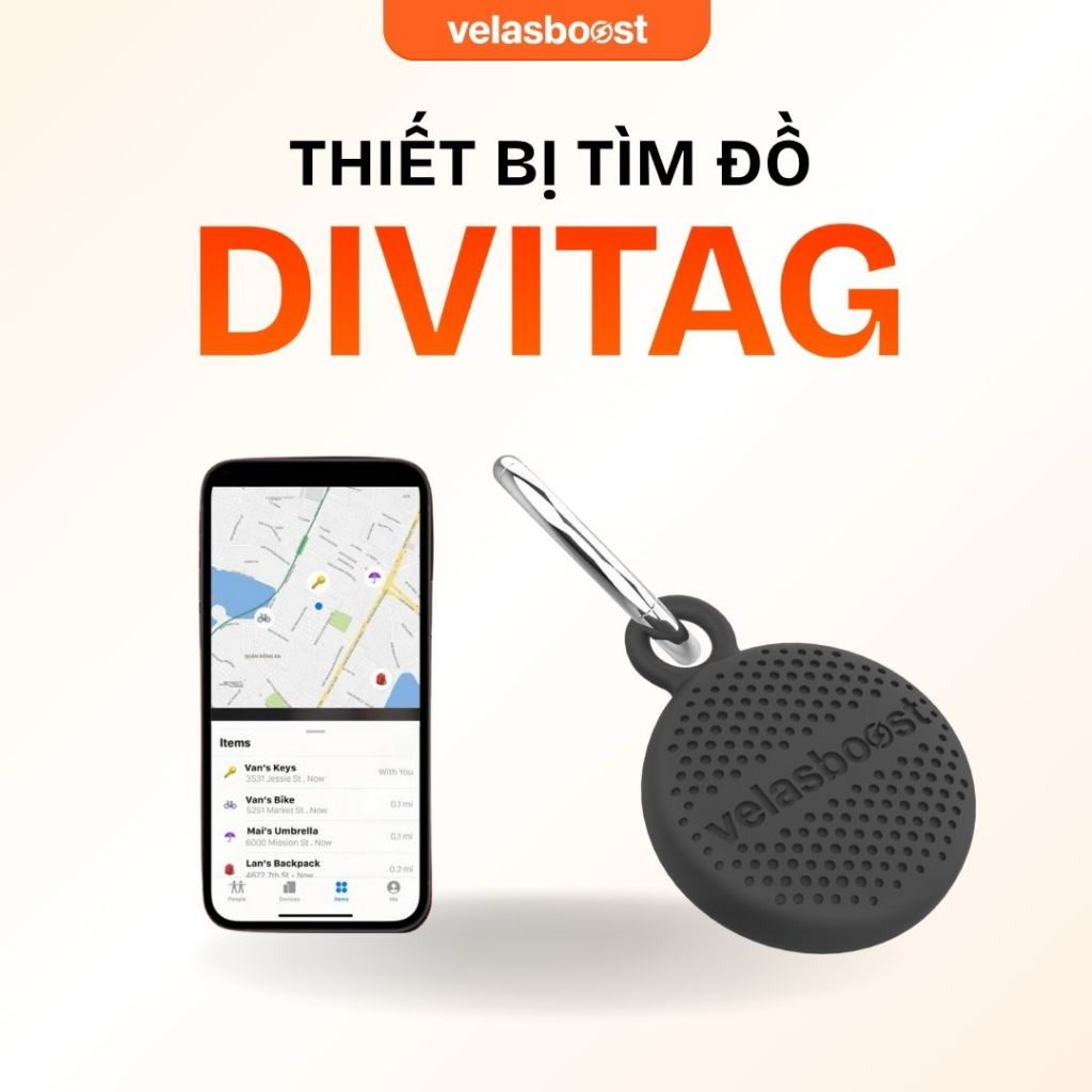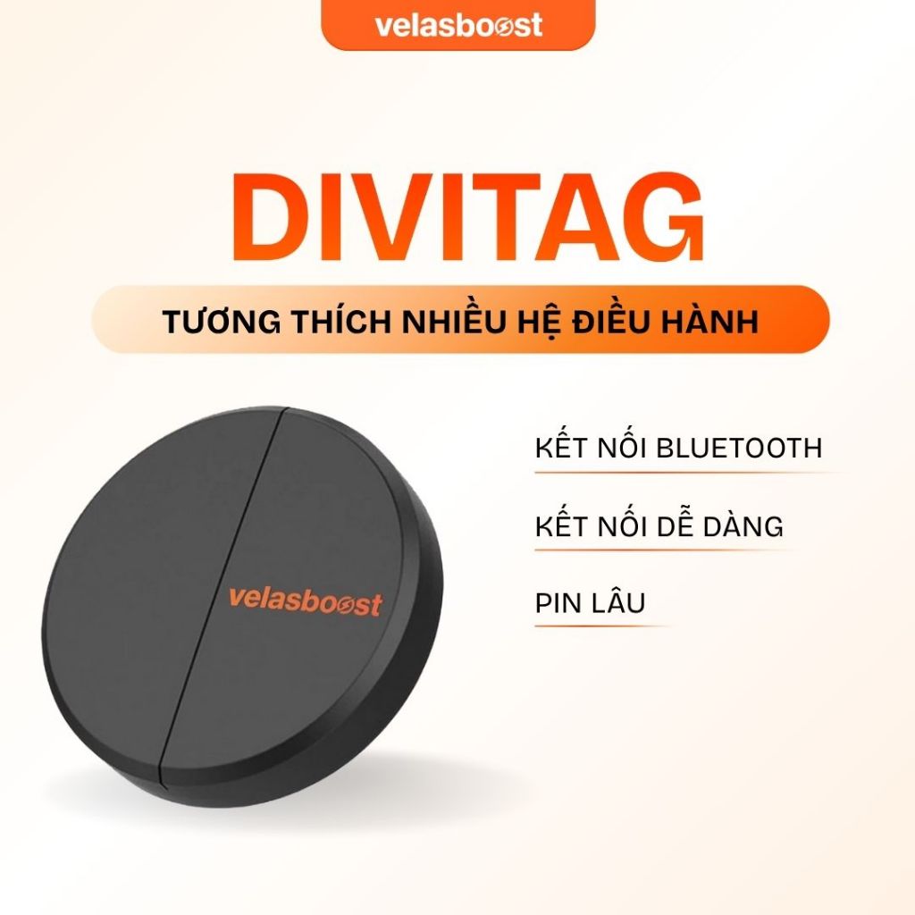 Thiết bị định vị tìm đồ, tìm vật Divitag velasboost, Blt 5.2, Tương thích nhiều hệ điều hành, Đơn giản tiện lợi, Kèm móc