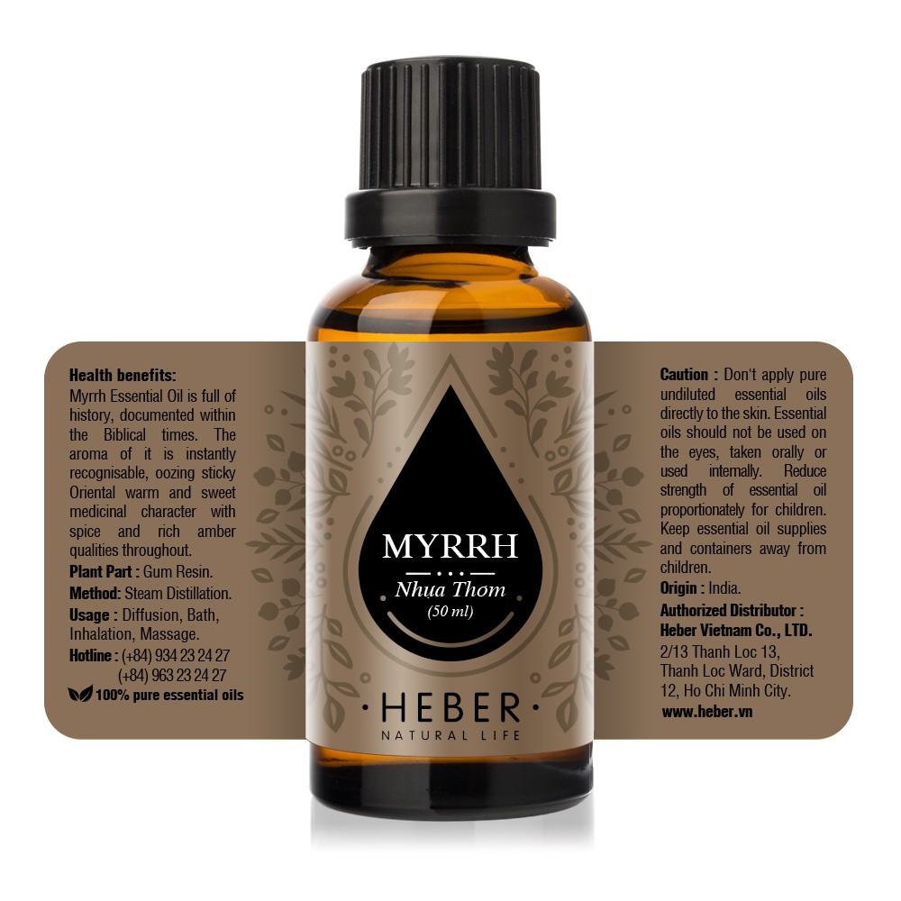 Tinh Dầu Nhựa Thơm Myrrh Heber Natural Life, Thiên Nhiên Nguyên Chất Cao Cấp, 10ml/30ml/50ml