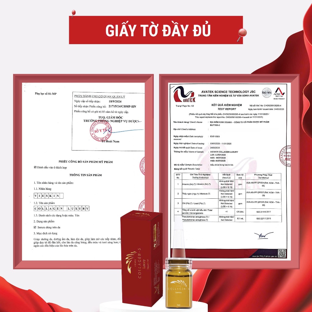 Tinh chất Vieskin Collagen Luxury dưỡng môi sau phun xăm, collagen tươi dưỡng lên màu sắc nét, siêu căng bóng, lọ 7ml