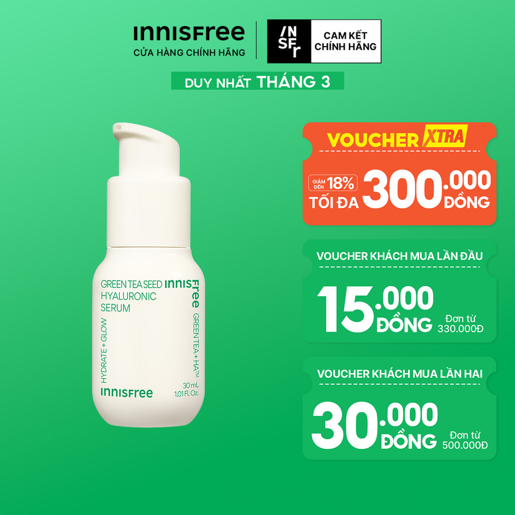 Serum trà xanh cấp ẩm sâu phục hồi da, với Probiotics INNISFREE Green Tea Seed Hyaluronic Serum 30mL