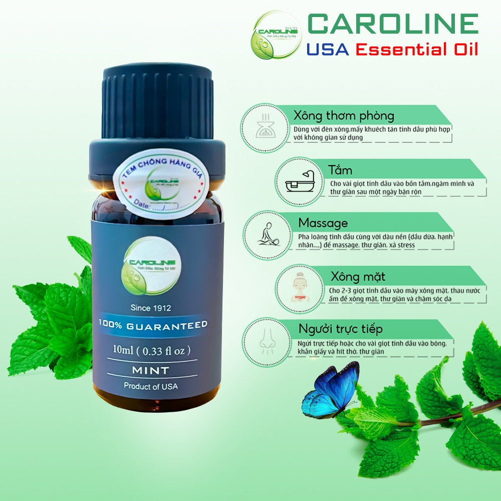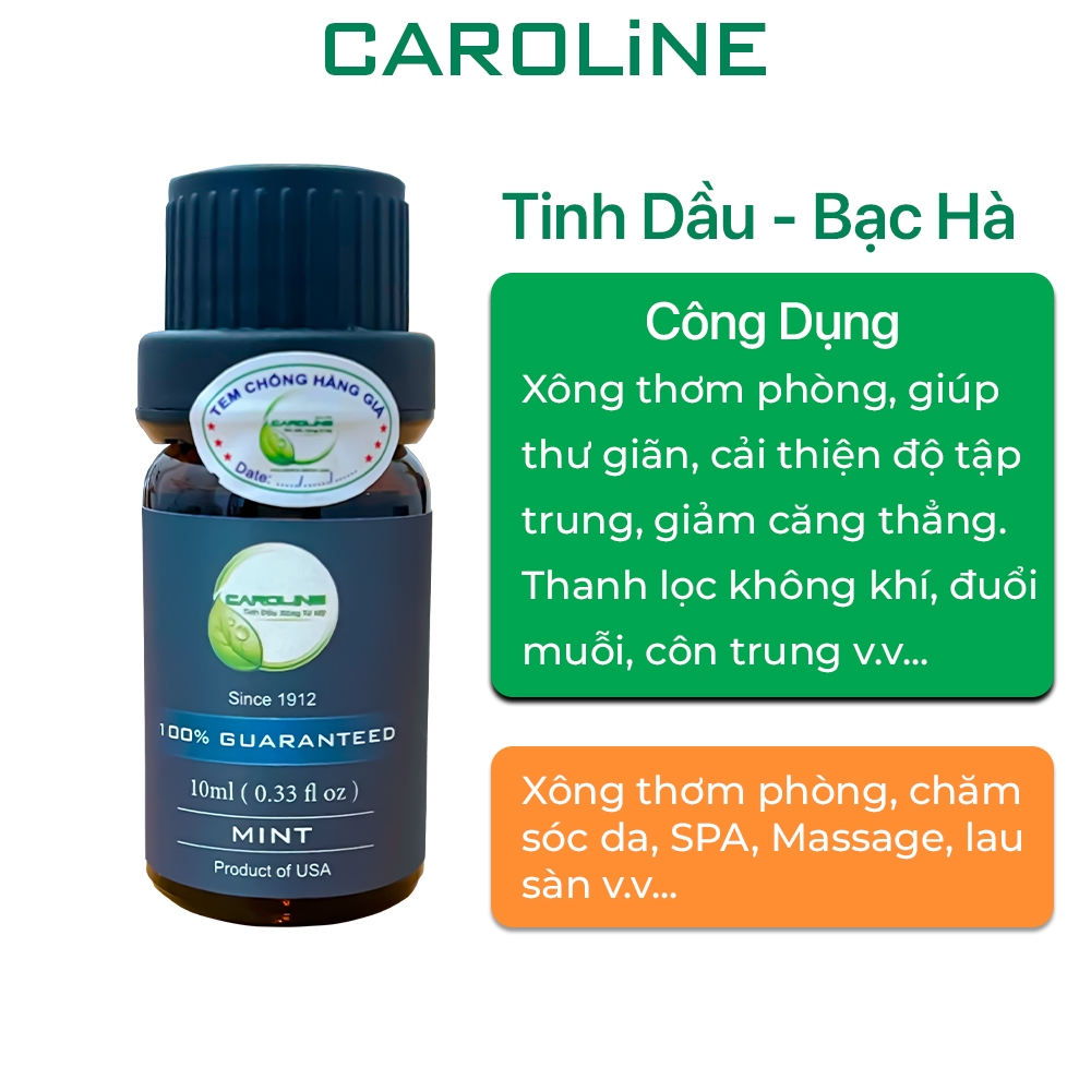 Tinh dầu Bạc Hà Caroline 10ml/50ml/100ml xông phòng, thơm, khử mùi - Cam kết chất lượng, chính hãng