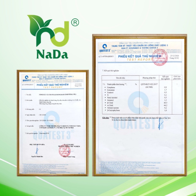Tinh dầu sả chanh Nada Oils | khử mùi, kháng khuẩn, đuổi muỗi, thư giãn | Kiểm định bởi QUATEST3