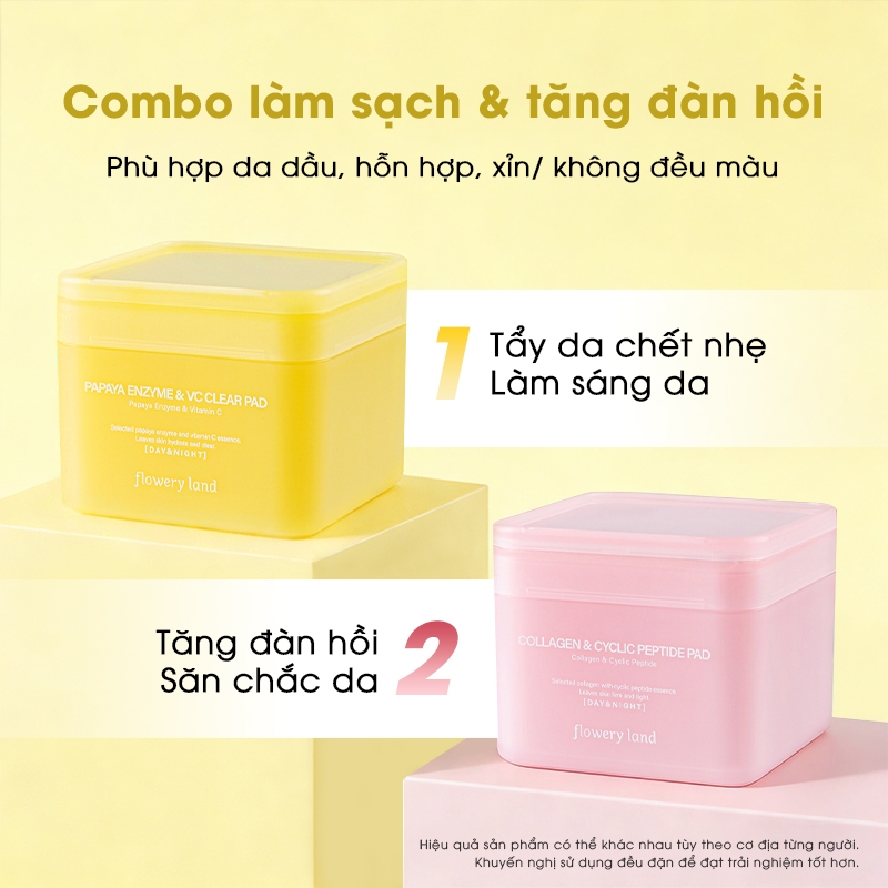 Toner Pad FLOWERY LAND Thấm Tinh Chất Dưỡng Ẩm Tẩy Da Chết Giúp Da Trắng Sáng Làm Dịu Mịn Da (Free Gift)