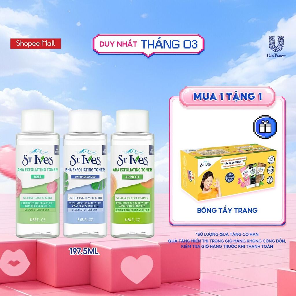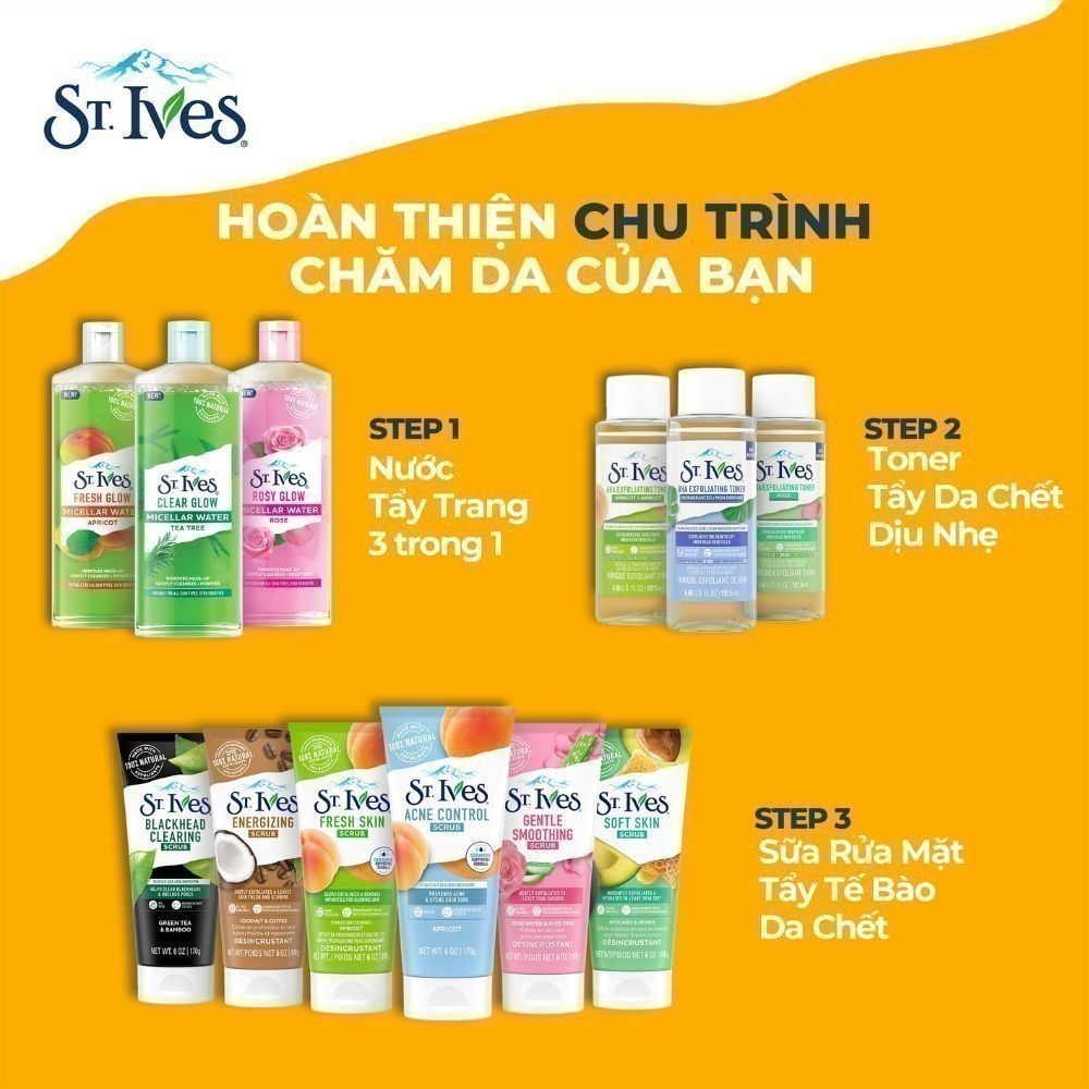 Toner St.ives AHA 5% Hoa Hồng, Trái Mơ và BHA 2% tẩy da chết và cấp ẩm cho da 197.5ml (Tùy chọn)