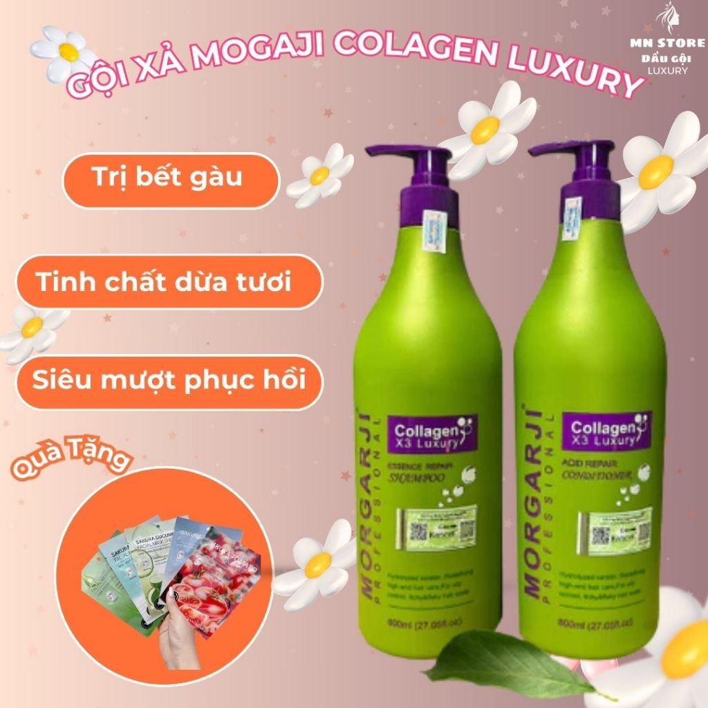 Gội Xả Collagen Morgarji 800ml - Phục Hồi Tóc - Kiềm Dầu - Siêu Mượt | Hàng Chính Hãng - Mn Store