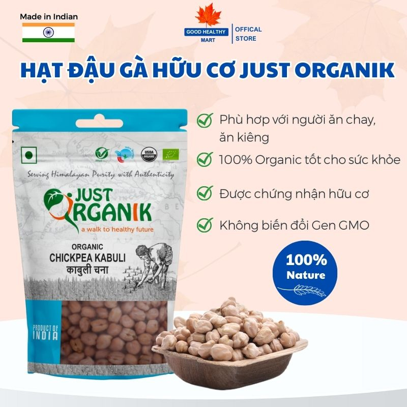 Hạt Đậu Gà Khô Trắng Hữu Cơ Just Organik Organic Chickpea Nhập Khẩu Ấn Độ Ăn Dặm Cho Bé 500g