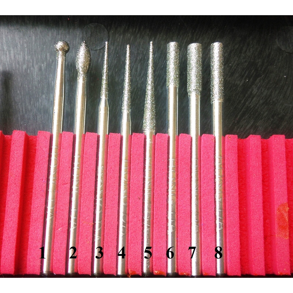 Combo 5 Mũi mài kim cương Đài Loan không đen sứ loại cây lẻ