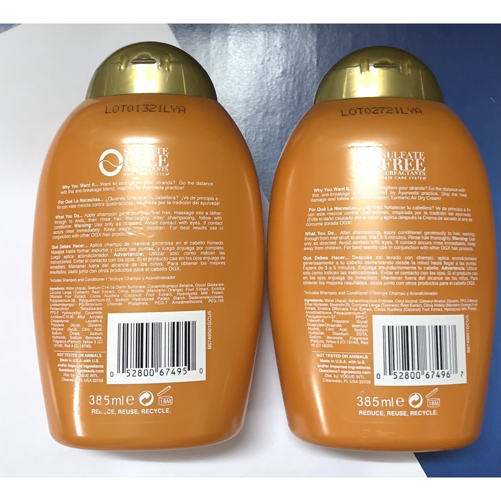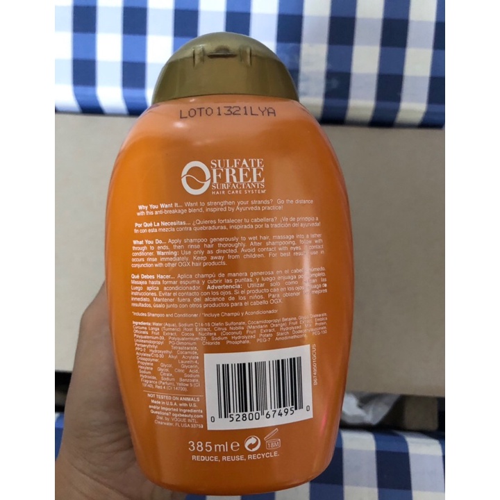 Dầu gội OGX Strength Length + Golden Turmeric 385ml của Mỹ- Chiết xuất nghệ và sữa dừa