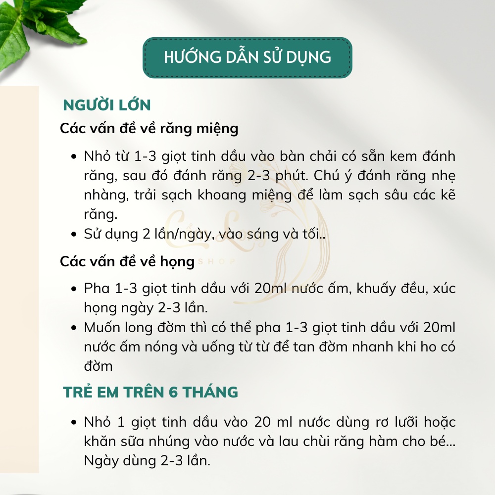 Tinh dầu thơm miệng inod Huyền Phi 10ml khử mùi hôi miệng, hết đau răng, nhiệt miệng, sâu răng