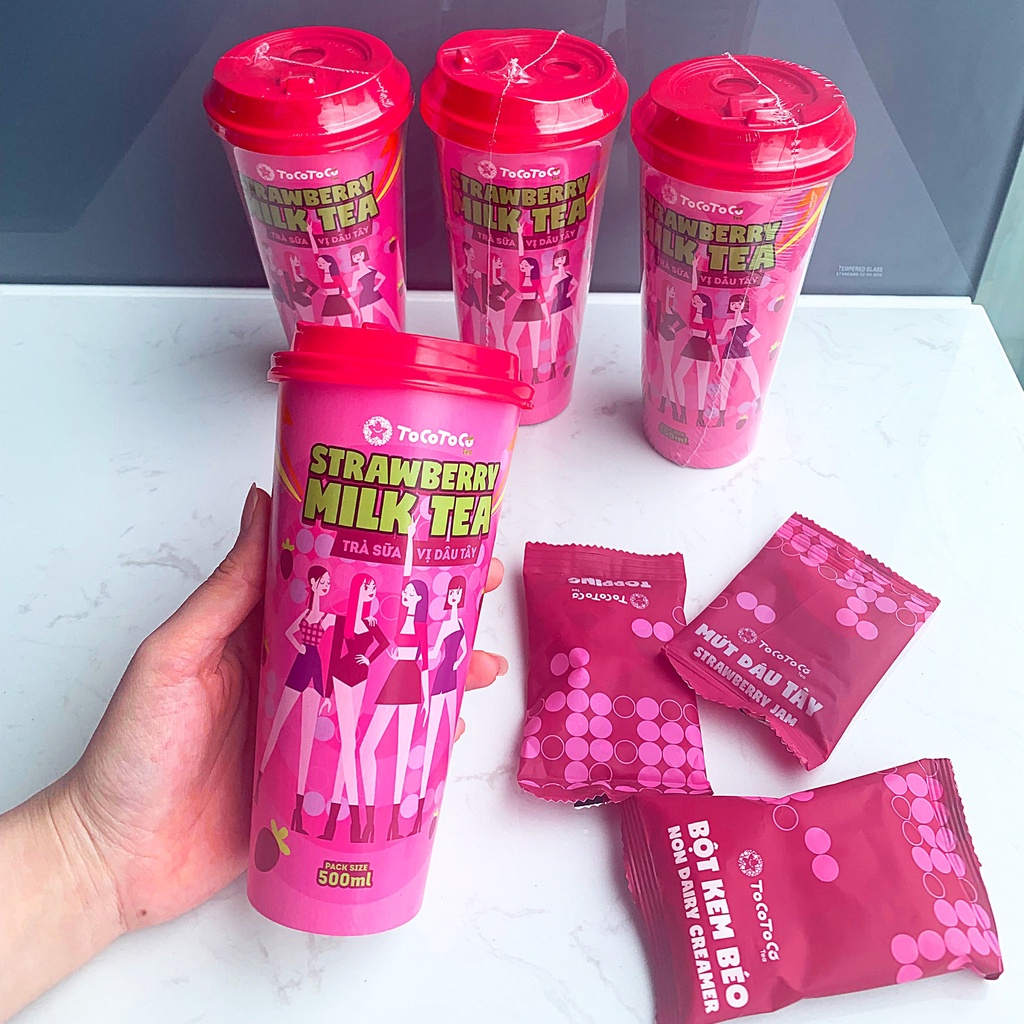 Trà sữa Trân châu vị Dâu tây - Trà Sữa Ly ToCoToCo Tea 500ml Thơm Ngon Tiện Lợi