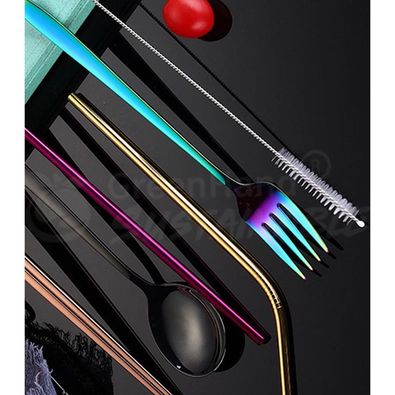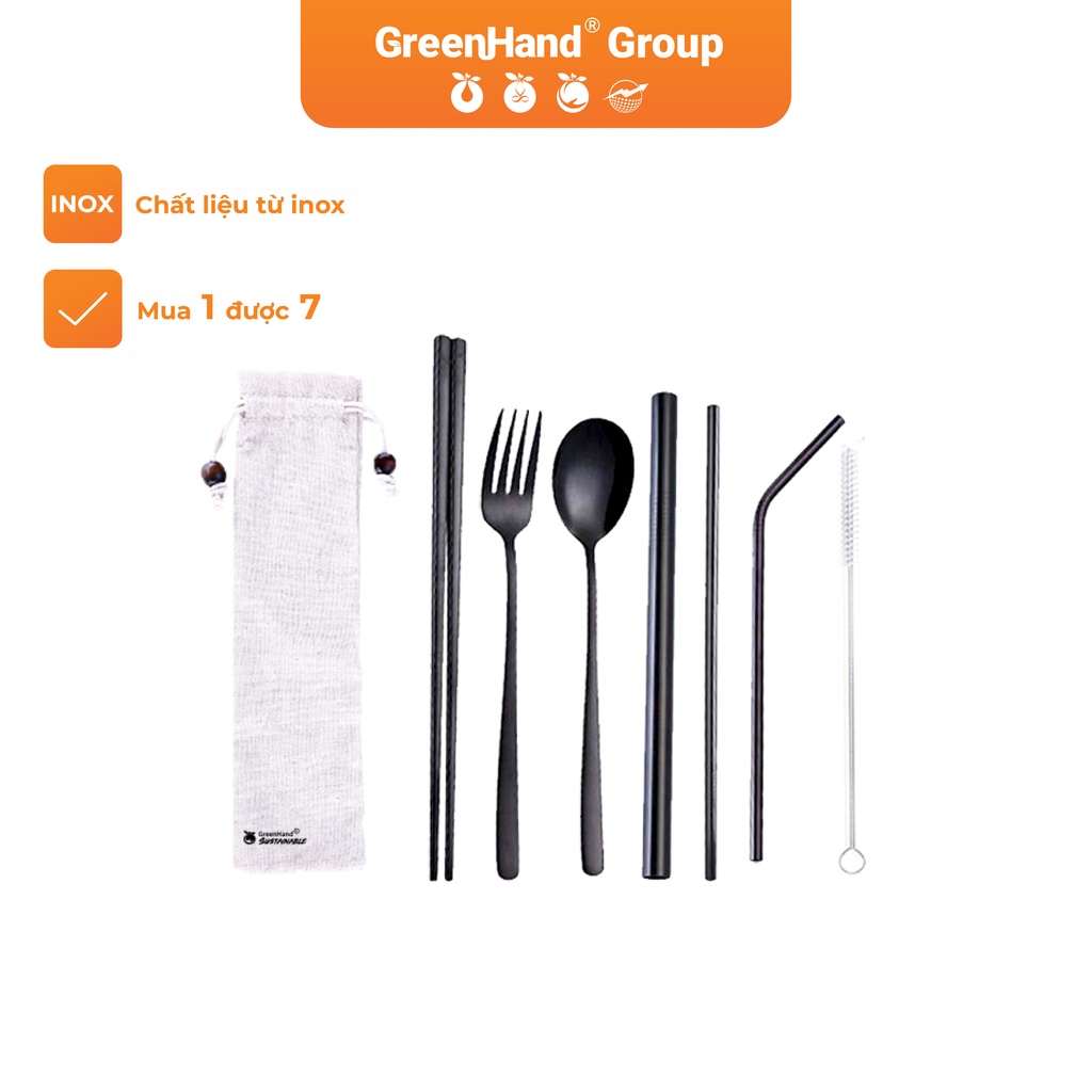 Trọn bộ 6 dụng cụ ăn uống bằng Inox cao cấp GreenHand kèm cọ rửa và túi đựng